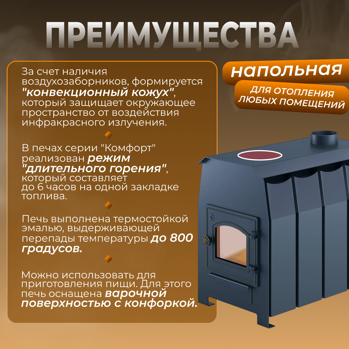 Дровяная печь Везувий Комфорт 200 (ДТ-3С) с варочной поверхностью чёрный интересное: