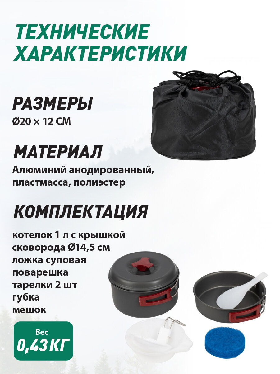 | Плюсы: | Довольно компактный набор посуды на одно-двух туристов.