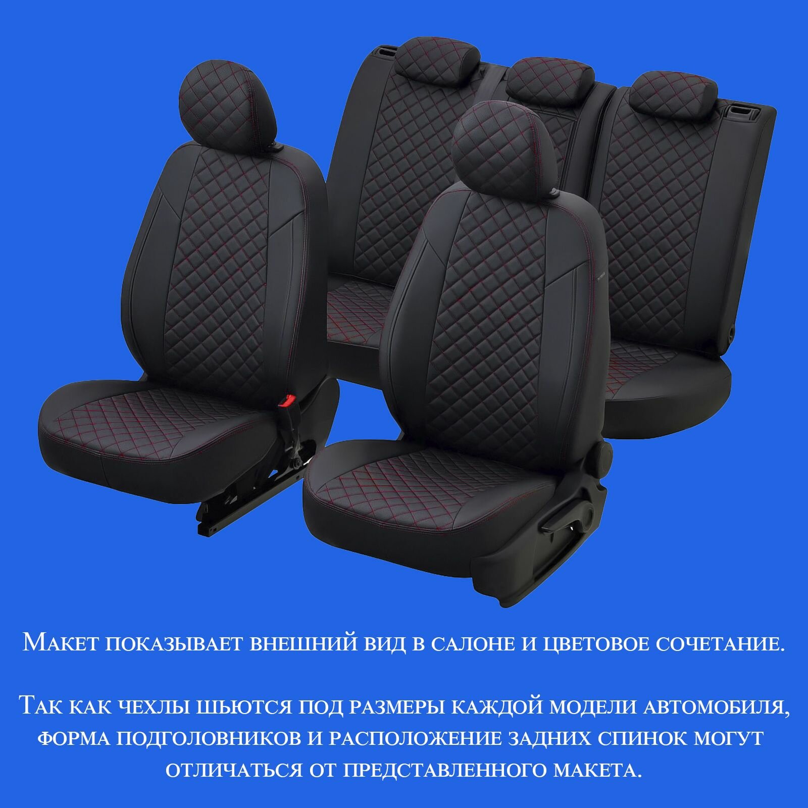 Комплект чехлов Автопилот Ромб Mitsubishi Lancer 10 Sd с 07-11г. (комплектация invite) Черный + Красная строчка
