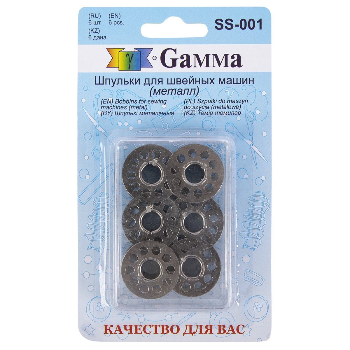 Принадлежности для бытовых швейных машин "Gamma" Шпульки для шв.маш. металл SS-001 6 шт в блистере .