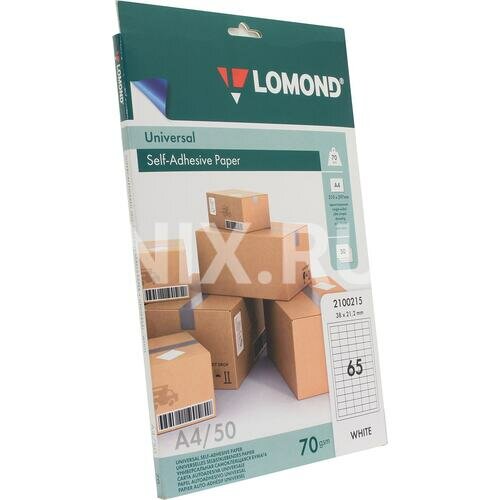 Самоклеящаяся бумага Lomond A4 2100215, 70 г/м2 50 листов, 65 делений (38 x 21.2 мм), белая, для этикеток, универсальная