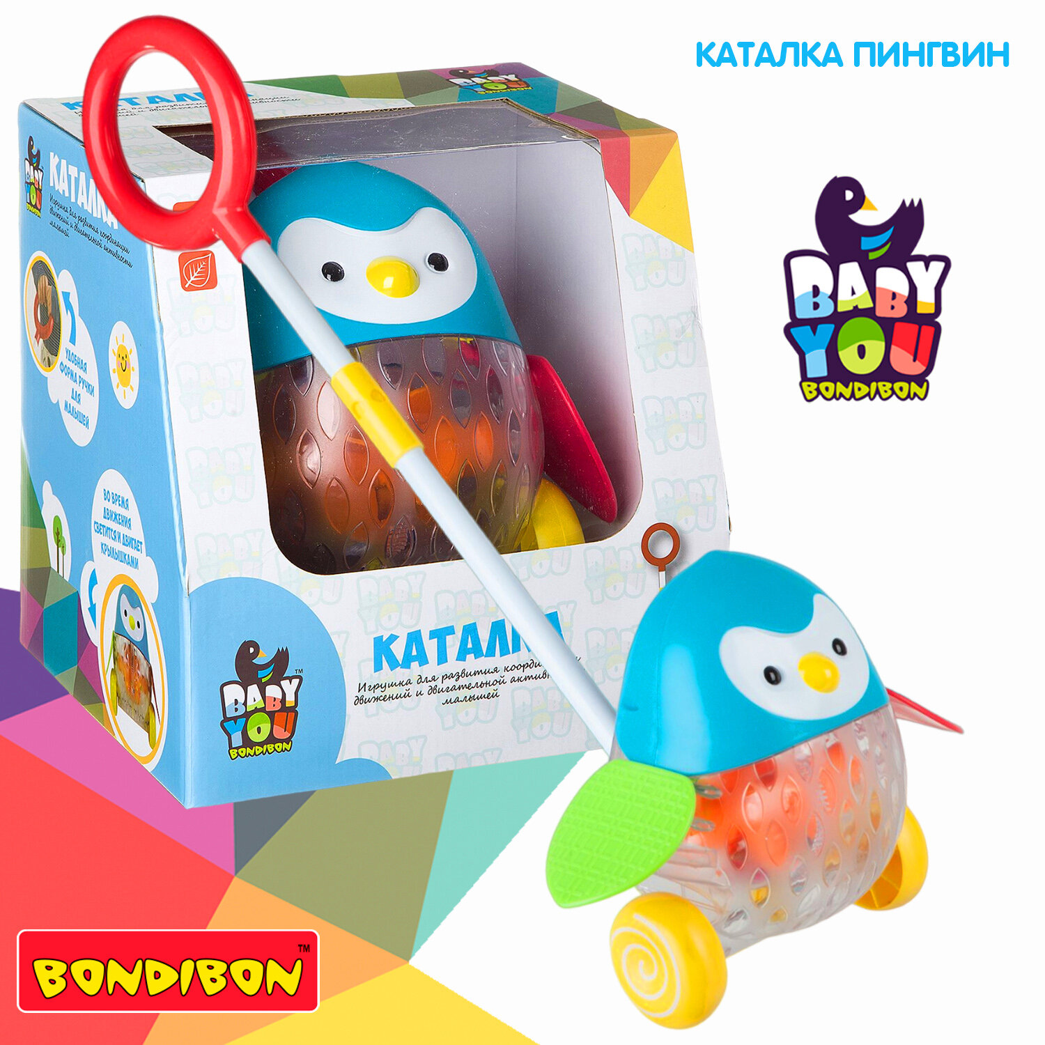 Игрушка светящаяся Bondibon, каталка с ручкой Пингвин (ВВ2379)