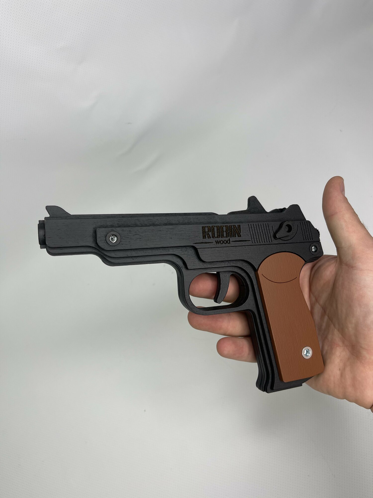 Деревянный игрушечный пистолет Стечкина (АПС): многозарядная игрушка-резинкострел 1