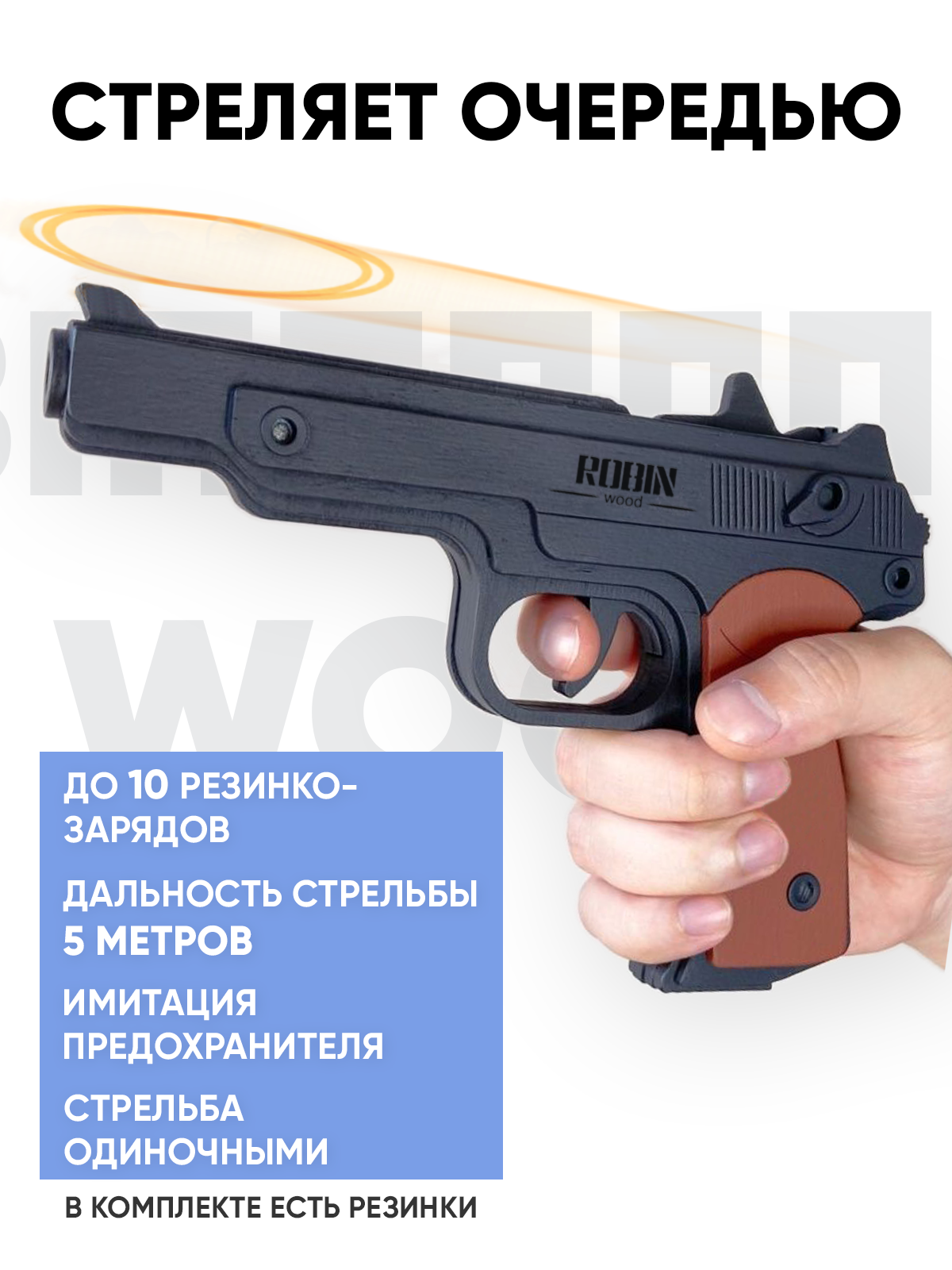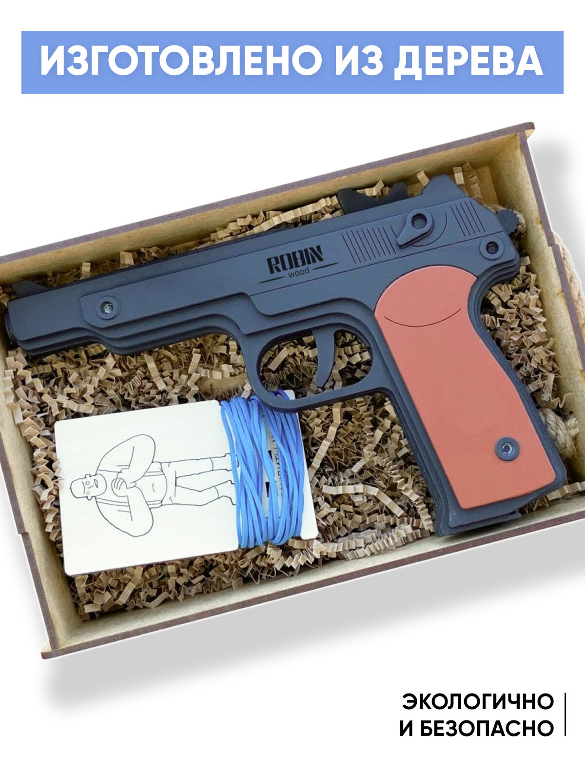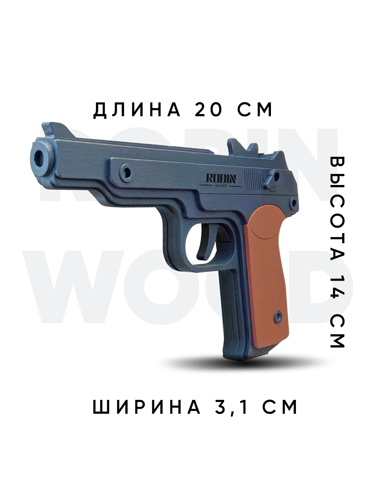 Деревянный резинкострел ARMA TOYS "Пистолет Стечкина" собранный, черный , Игрушка из дерева, Подарок мальчику