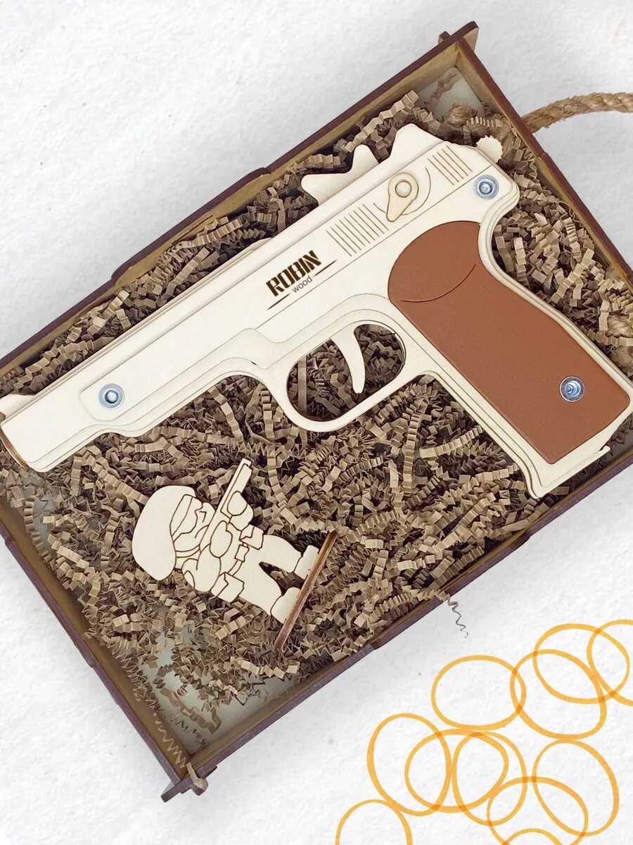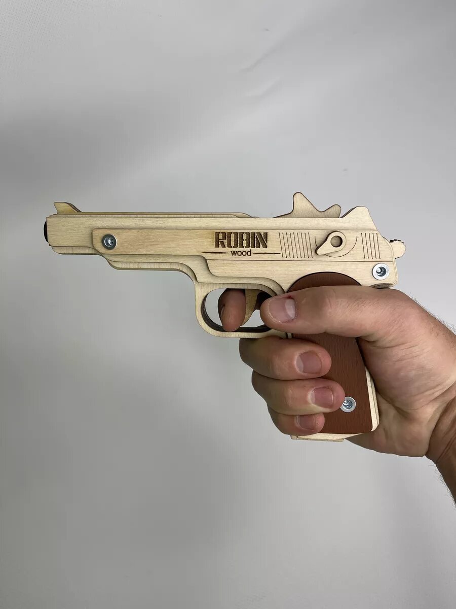 Деревянный игрушечный пистолет Стечкина (АПС): многозарядная игрушка-резинкострел 1
