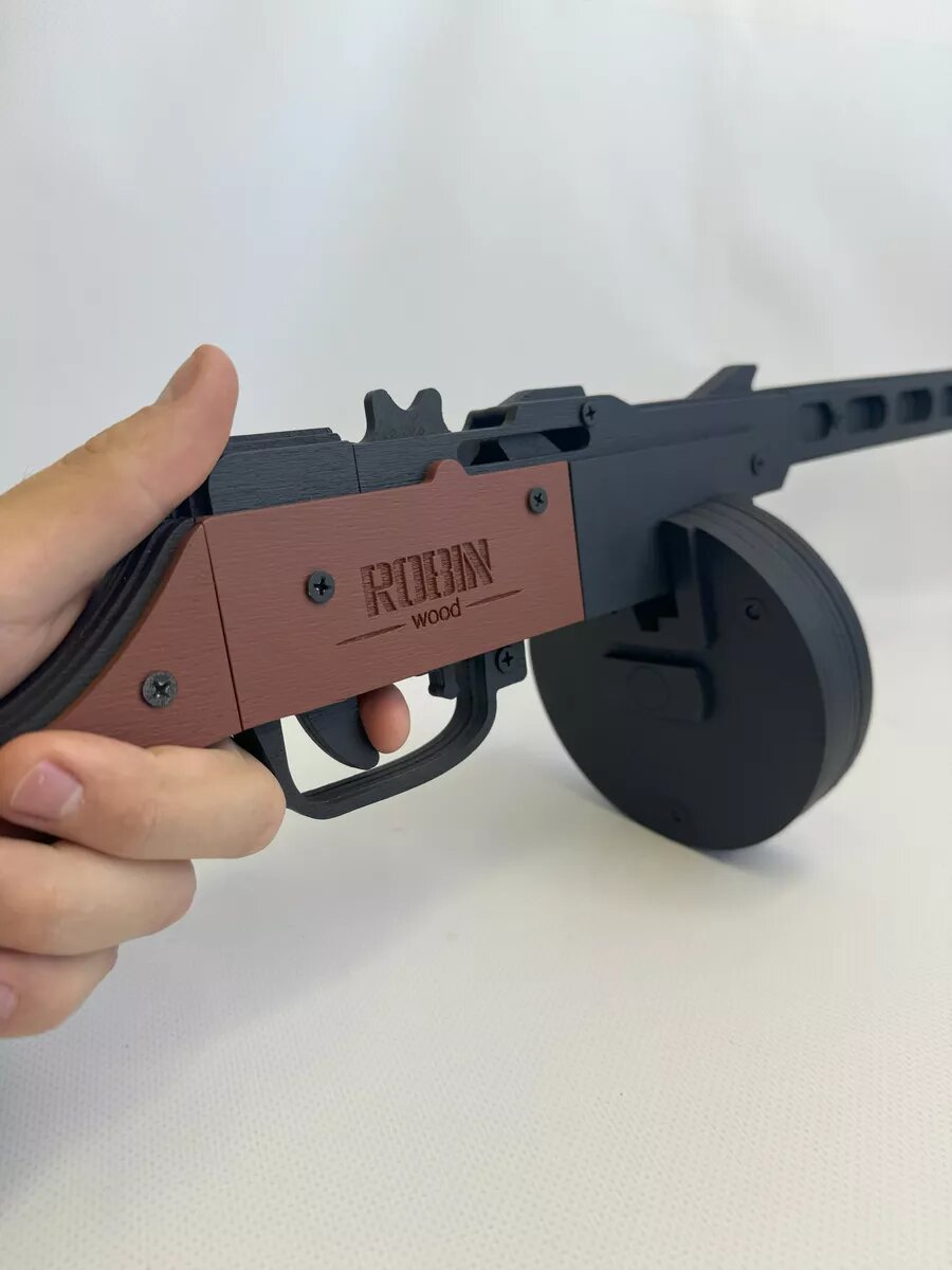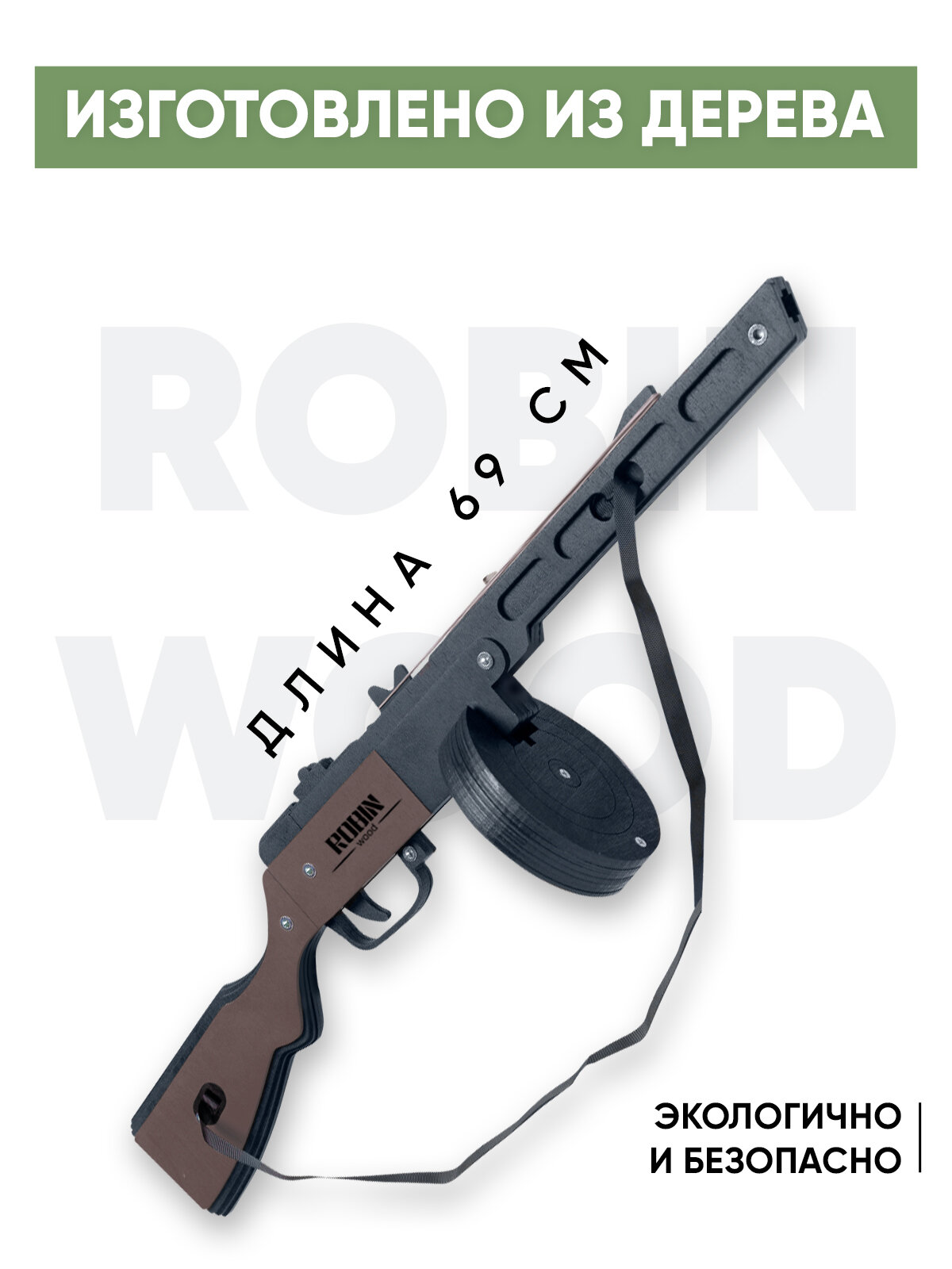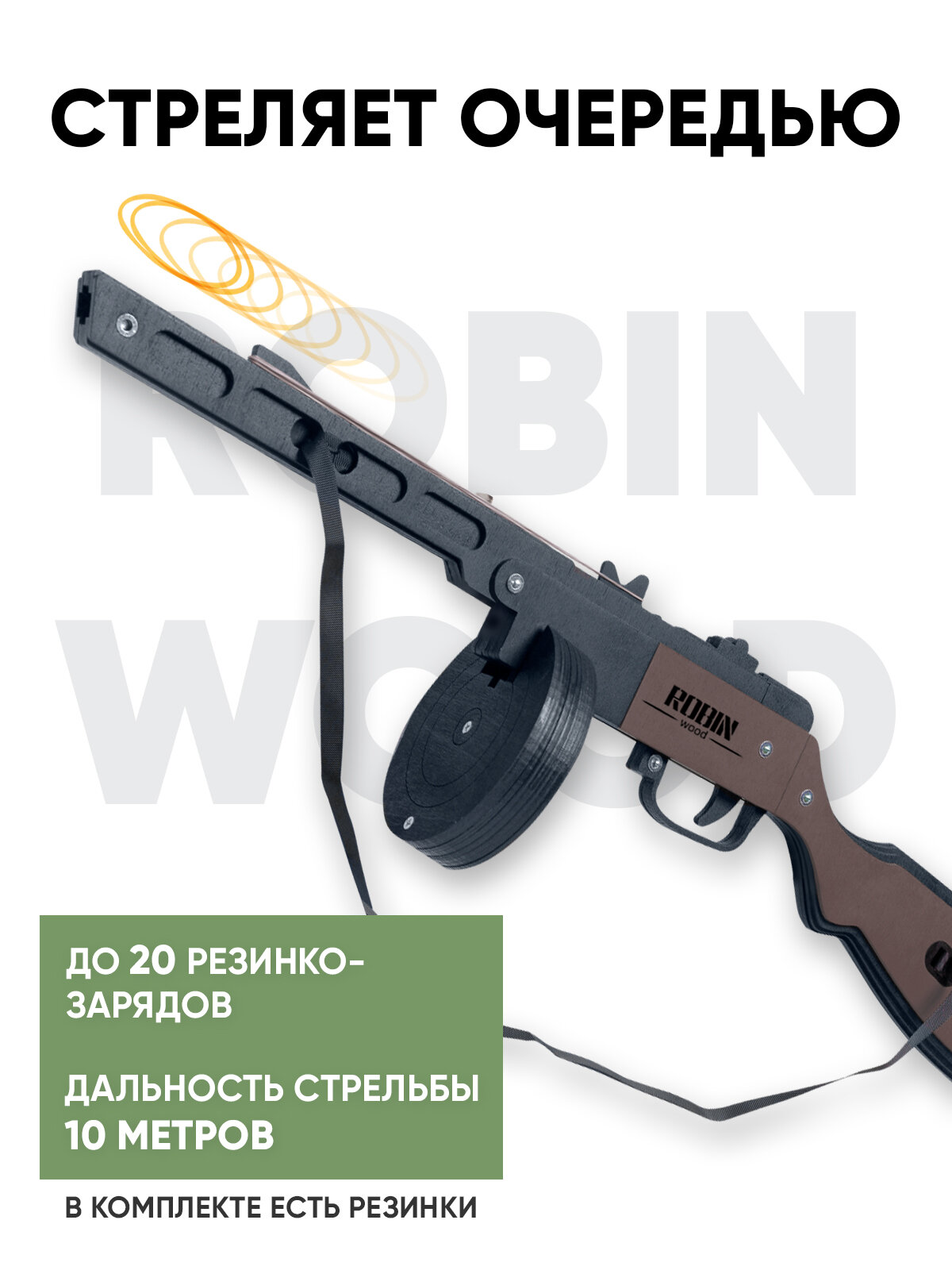 Игрушечный пистолет-пулемет "Автомат ППШ", деревянный резинкострел, собранный, Игрушка из дерева, Подарок мальчику