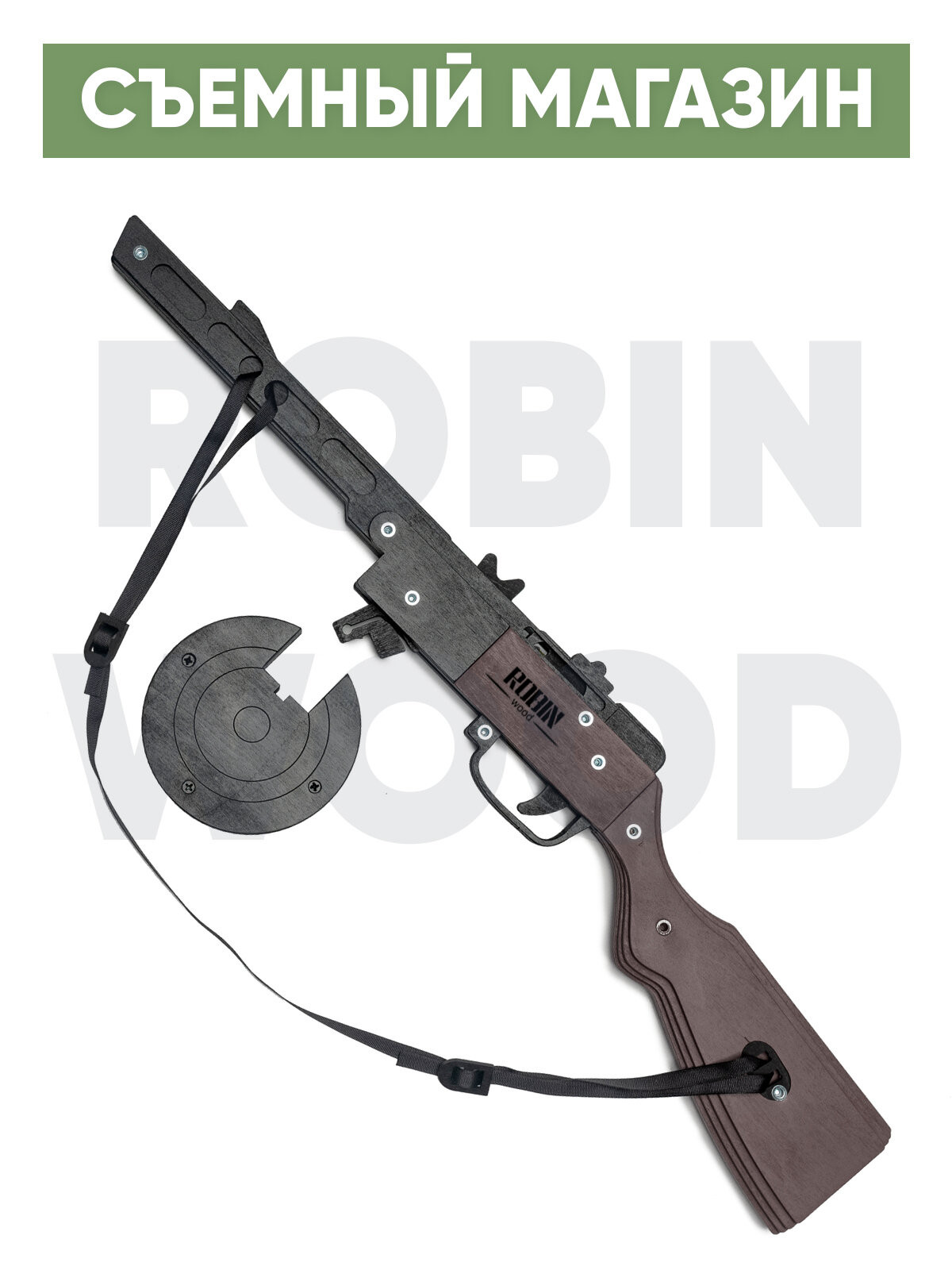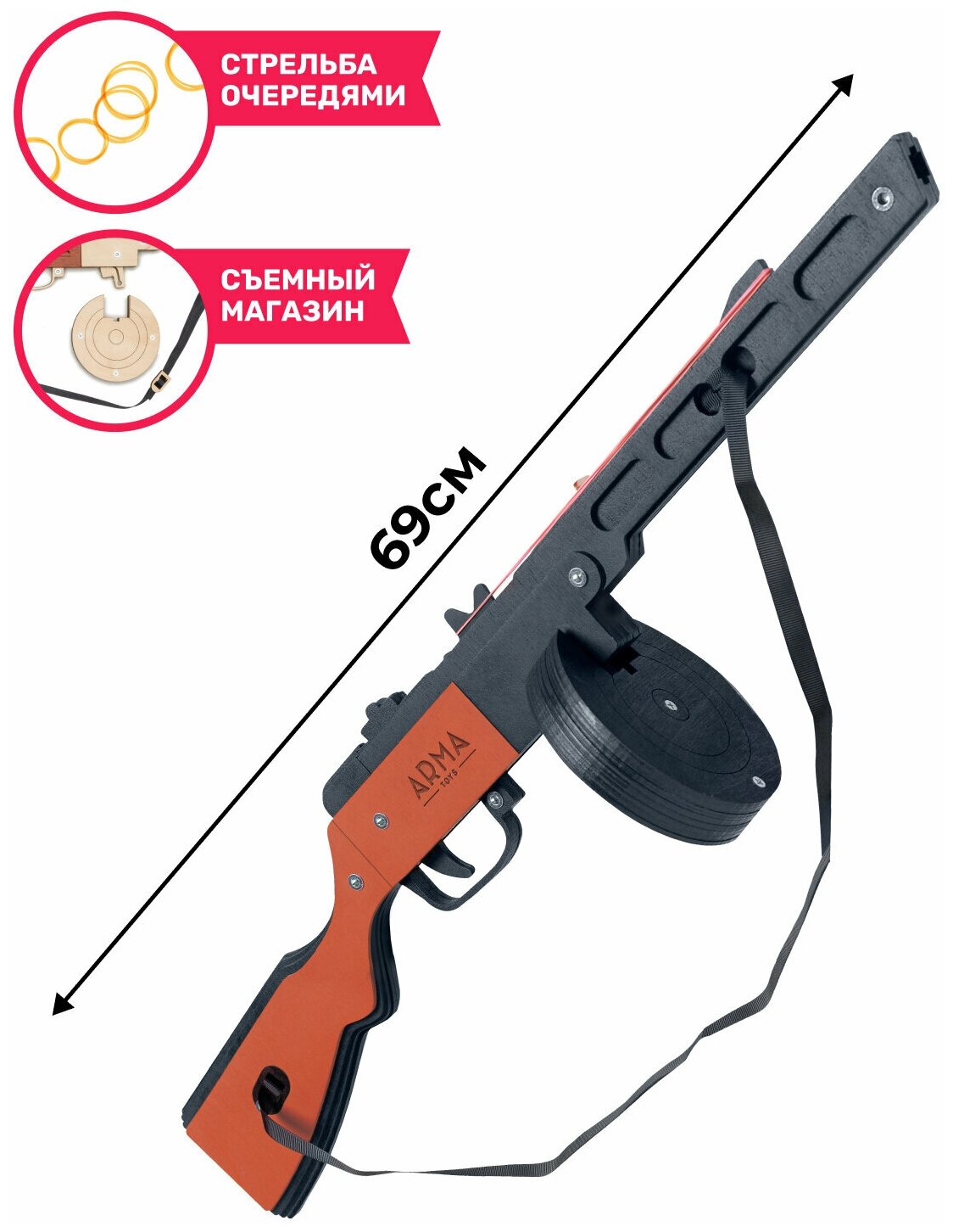 Автомат-резинкострел ППШ со съемным магазином и стрельбой очередями от ARMA. TOYS — деревянный, покрашен под настоящий