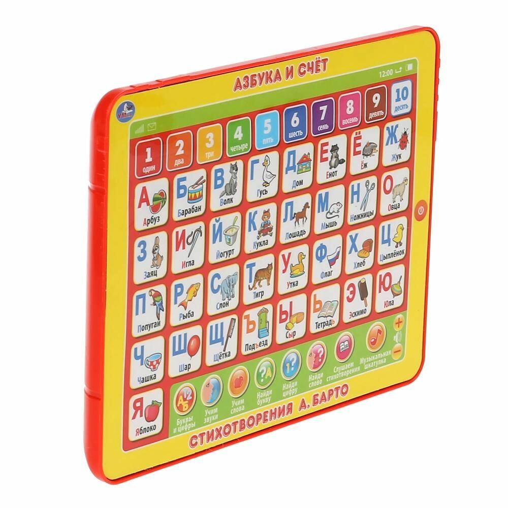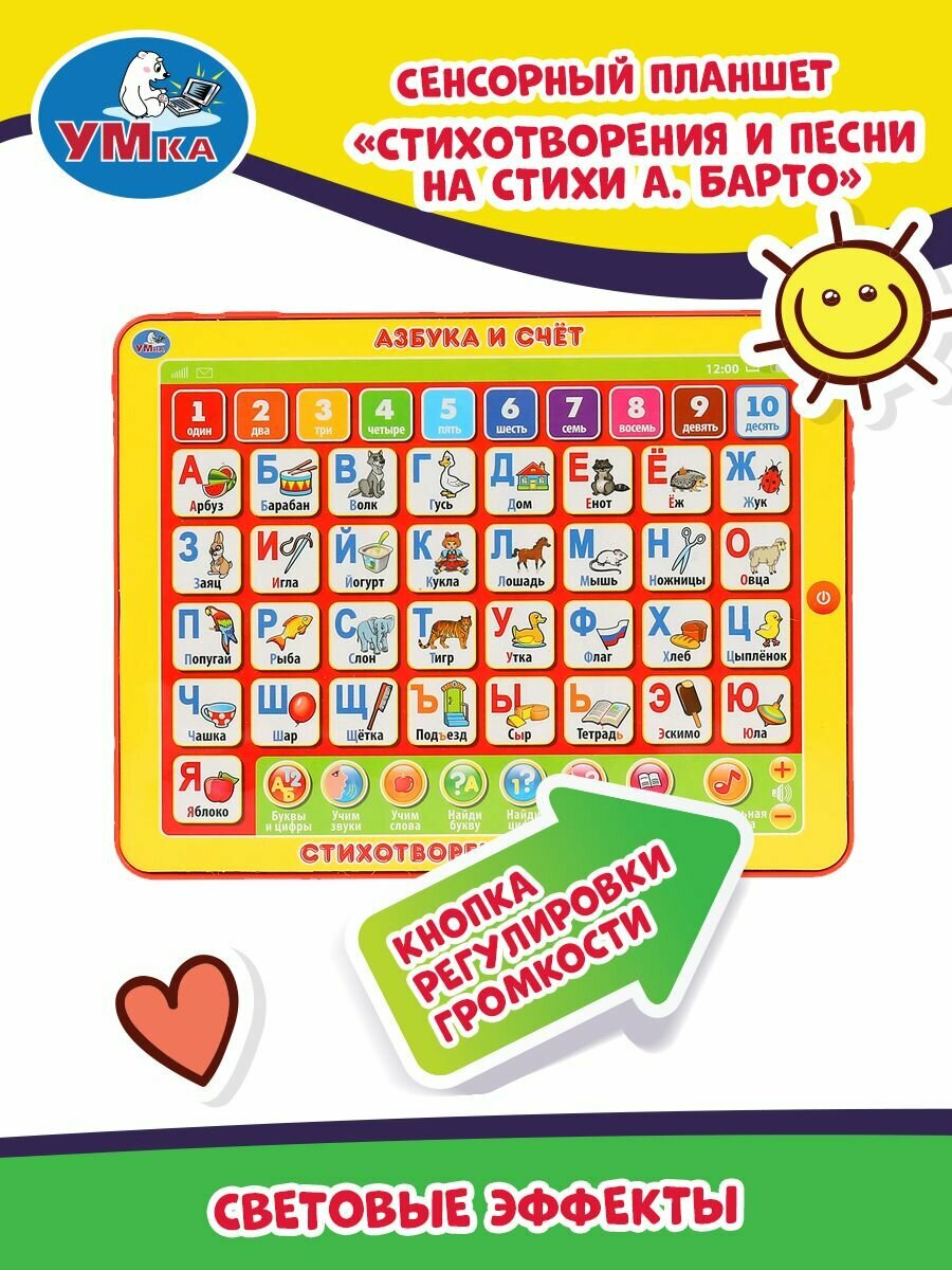 Сенсорный планшет барто А. азбука и счет 20 стихов и песен, 8 обуч. программ в кор. Умка