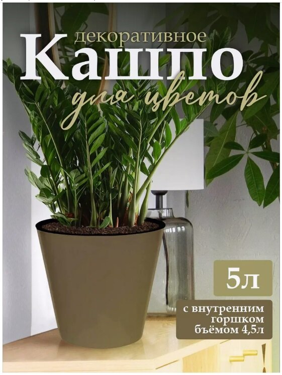 Горшок для растений с дренажной вставкой 5л, молочный шоколад