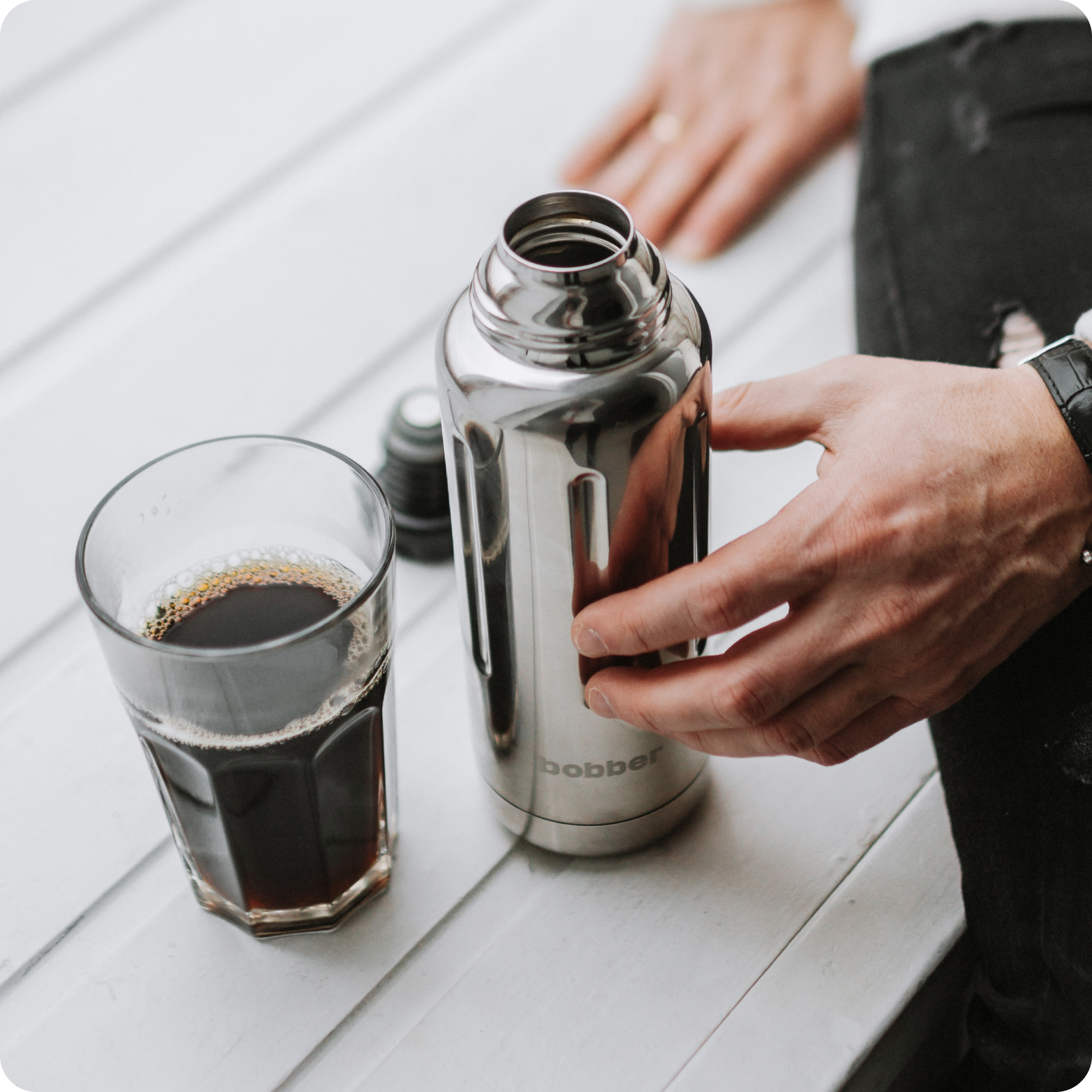 | Минусы: | Я курил два термоса на Озоне. 1л и 0,47л. Пока использую маленький. Заливаю заваренный зеленый отфильтрованный чай без листьев заварки, одна жидкость. Через несколько часов цвет у чая другой. Вкус чуть другой тоже. В стекле так не было, Мне кажется , bobber ОКИСЛЯЕТСЯ!!! нержавейка бывает разная |