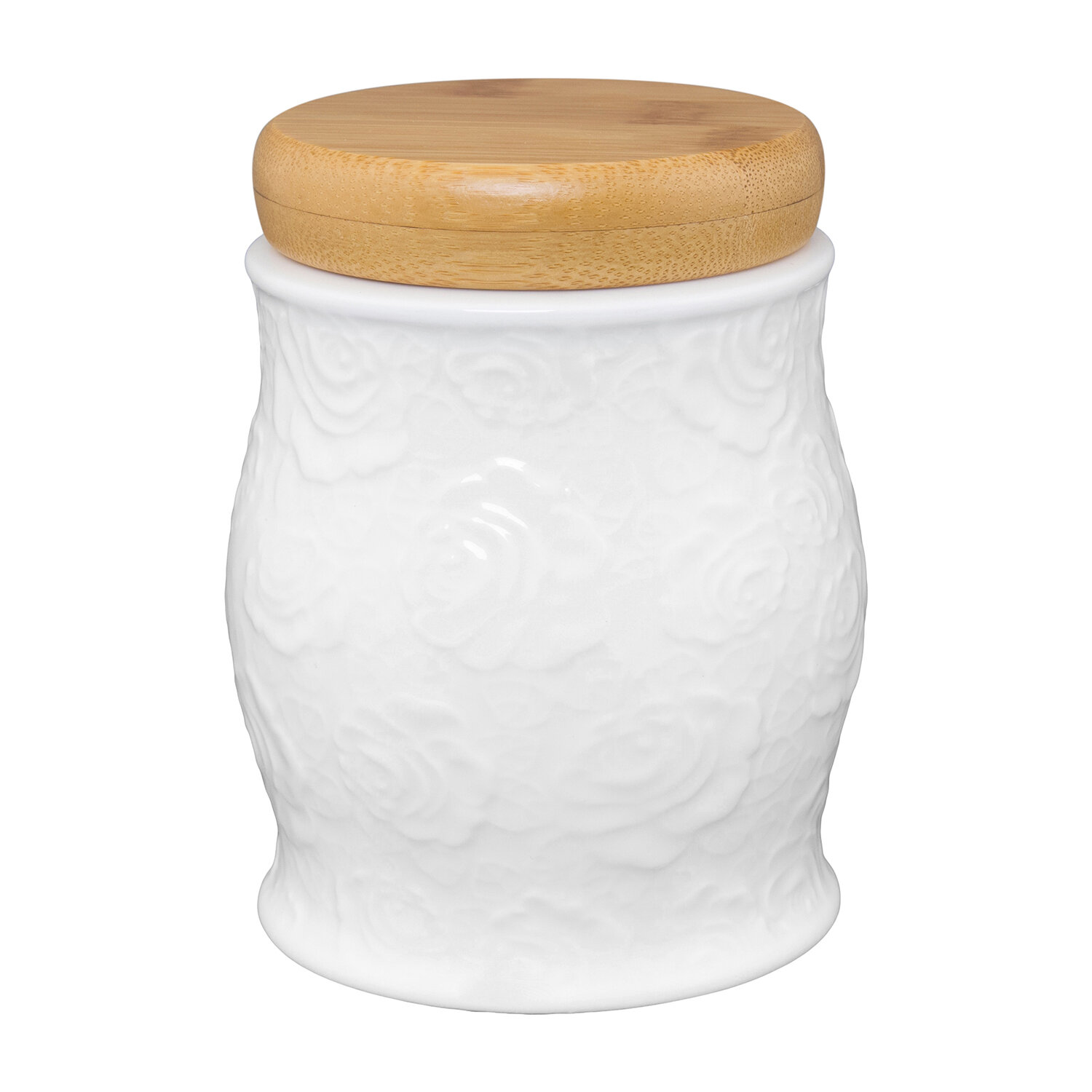Банка для хранения сыпучих продуктов / соли / сахара / чая / кофе 10*10*12 см 575 мл "Белые розы" с дерев. крышкой с сил. упл.