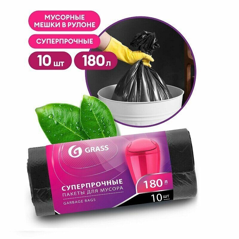 СохранитьМешок для мусора ПНД в рулоне 180 л, черный (рул. 10 шт), Grass интересное: