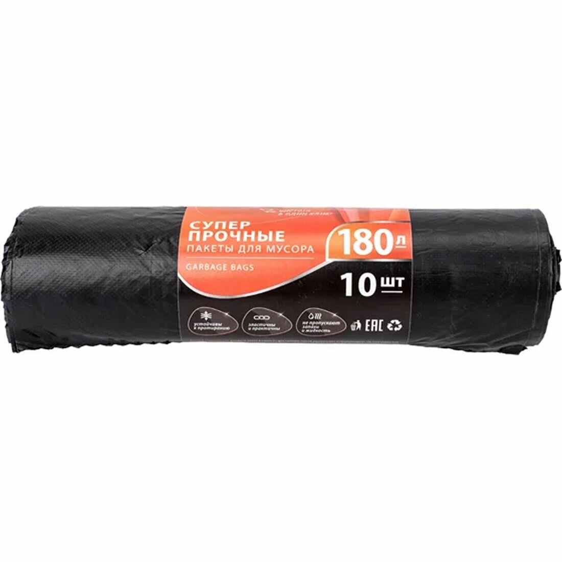 Купить Мешок для мусора ПНД в рулоне 180 л, черный (рул. 10 шт), Grass