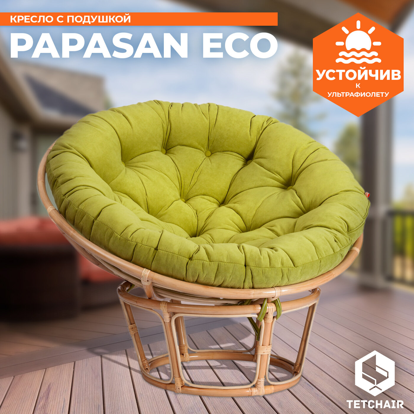 СохранитьКресло TetChair Papasan ECO P115-1/SP STD с подушкой, ремешками Natural, флок олива 23 интересное:
