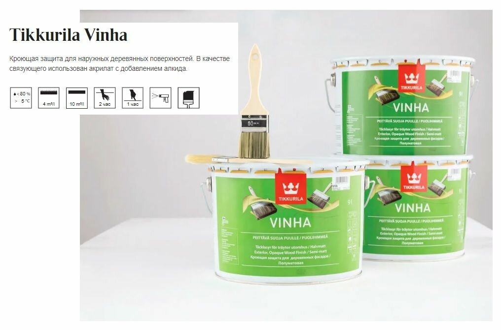 Tikkurila Vinha / Тиккурила Винха кроющий антисептик для древесины водорастворимый База С 2,7л
