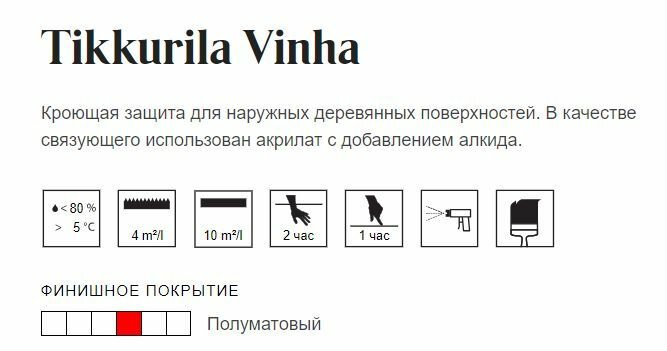 Tikkurila Vinha / Тиккурила Винха кроющий антисептик для древесины водорастворимый База С 0,9л