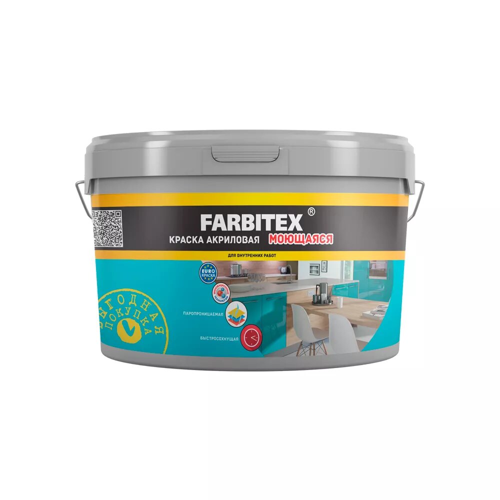 Краска акриловая моющаяся FARBITEX (Артикул: 4300004280; Фасовка = 6 кг)