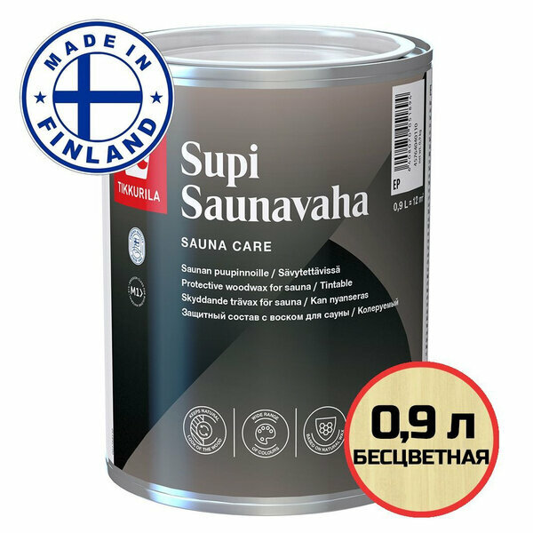 Защитный состав для саун с содержанием воска Tikkurila Supi Saunavaha, бесцветный, 0.9 л интересное:
