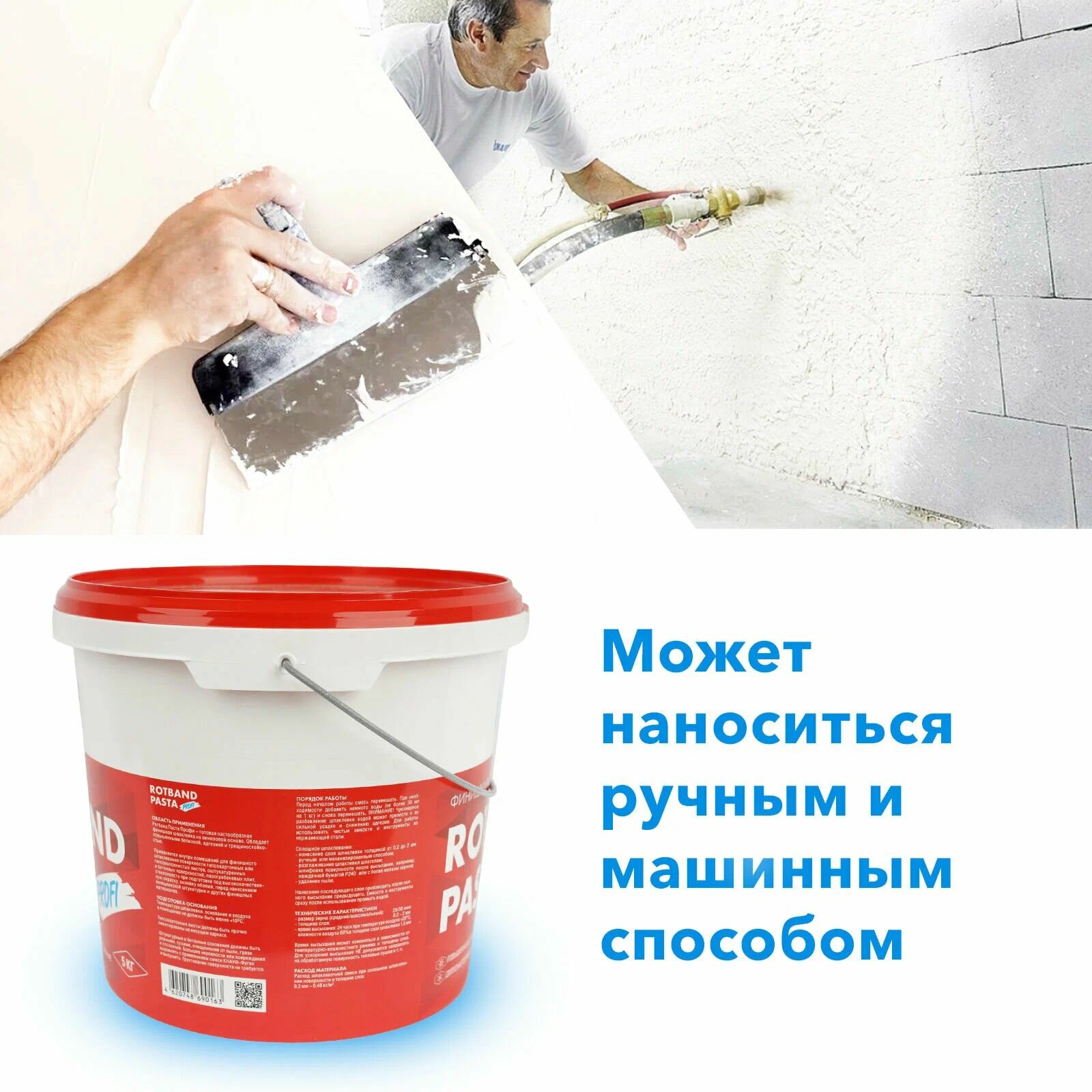 КНАУФ Ротбанд Паста Профи шпатлевка готовая (5кг) / KNAUF Rotband Pasta Profi шпаклевка финишная (5кг)