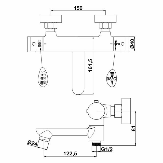 Термостат настенный для ванны и душа Swedbe Mercury с поворотным изливом 9045