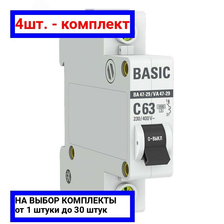 Купить 4шт. - Выключатель автоматический однополюсный 63А С ВА47-29 4.5кА / EKF; арт. mcb4729-1-63C; оригинал / - комплект 4шт