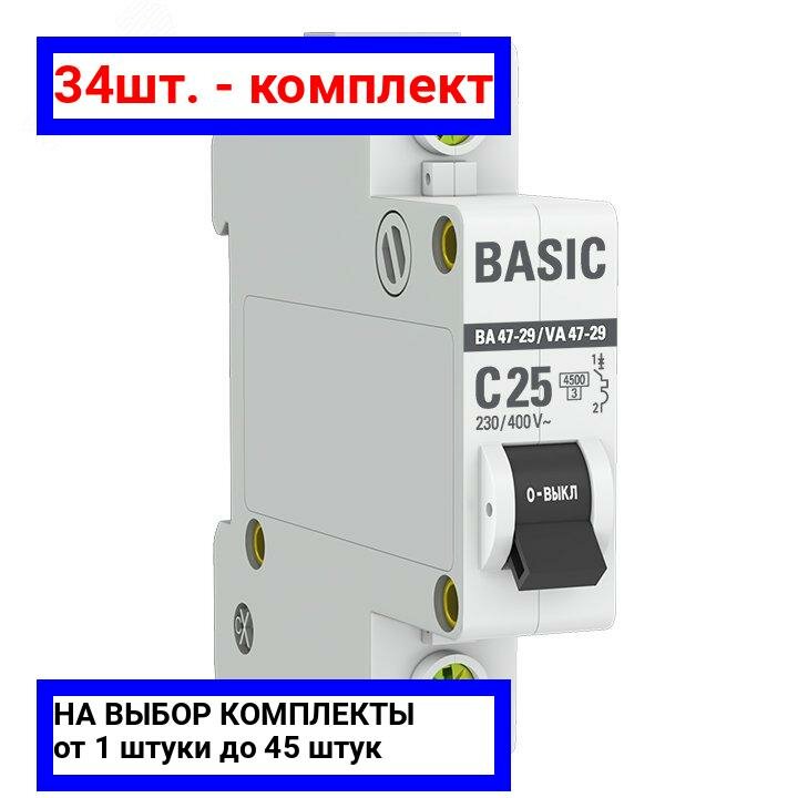 Сохранить34шт. - Выключатель автоматический однополюсный 25А С ВА47-29 4.5кА / EKF; арт. mcb4729-1-25C; оригинал / - комплект 34шт интересное: