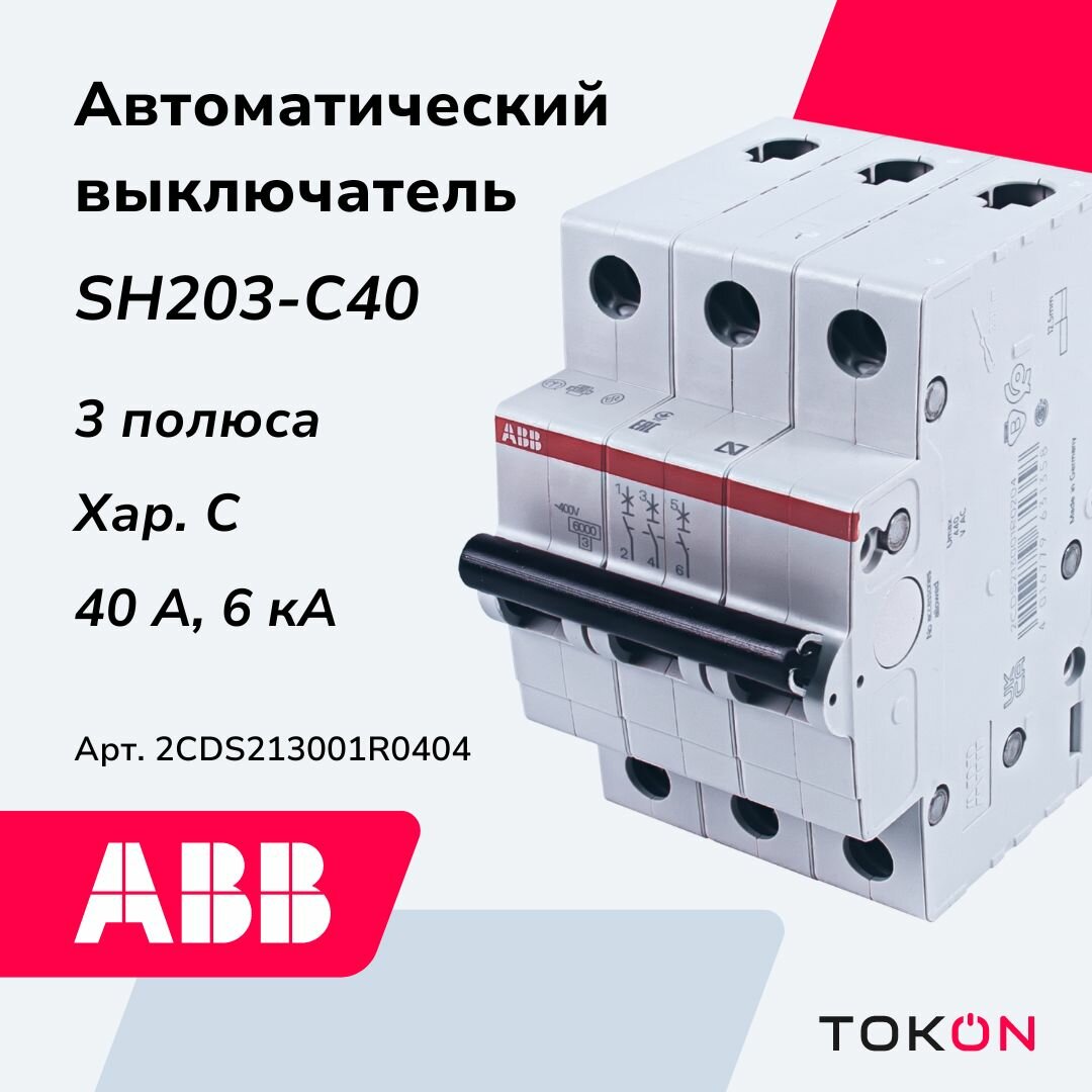 Автоматический выключатель ABB 3-полюсный SH203 C40 (автомат)