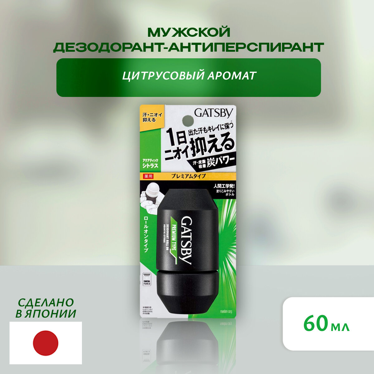 Mandom Премиальный роликовый дезодорант-антиперспирант "Gatsby Premium Type" с антибактериальным эффектом (с ароматом акватических цитрусов) 60 мл
