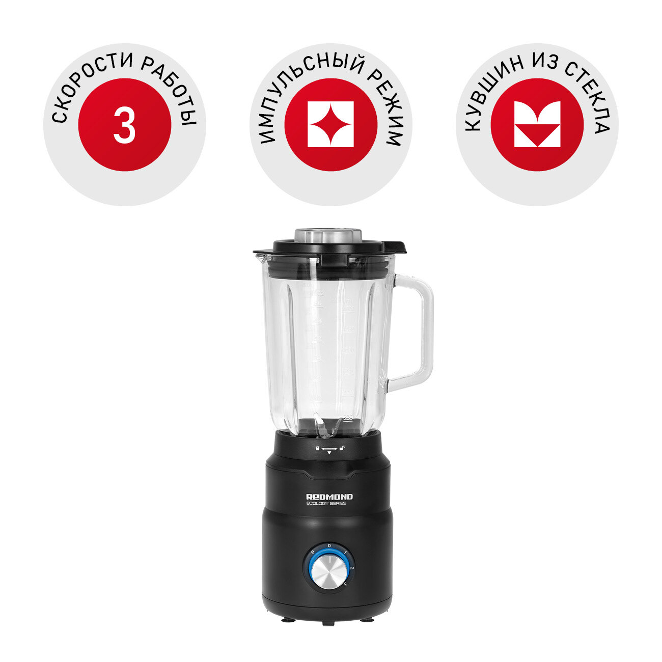 Купить Блендер REDMOND RSB-3402 1300Вт 3 скорости чаша 1,7л стекло