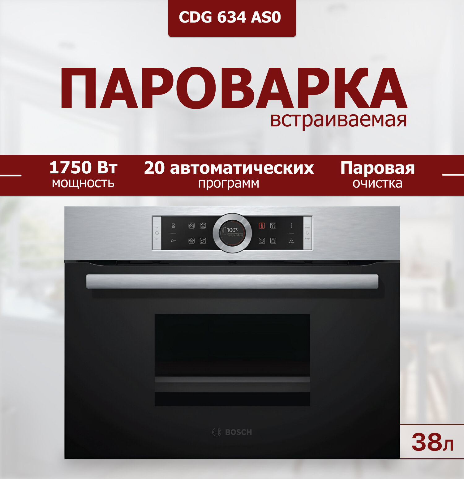 Пароварка Bosch Serie 8 CDG 634 AS0/AB0, нержавеющая сталь