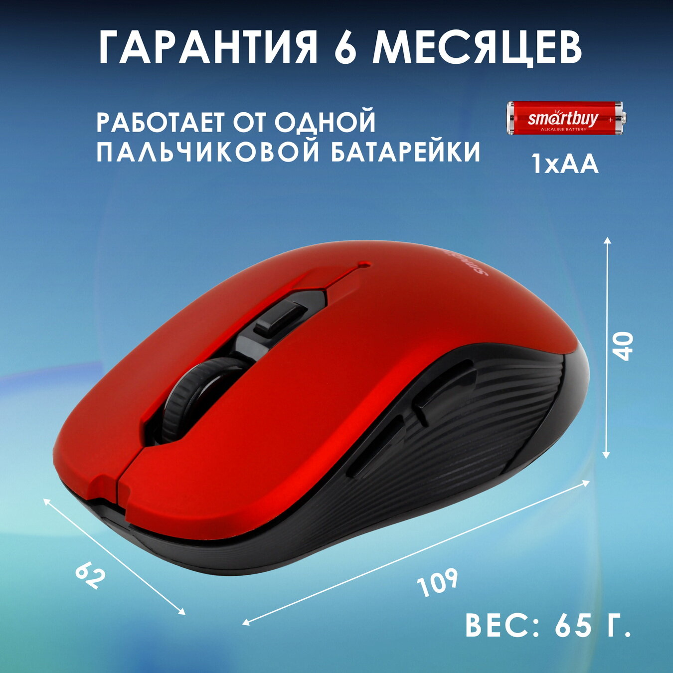 Мышь беспроводная SmartBuy 200AG ONE красная (SBM-200AG-R) / 40