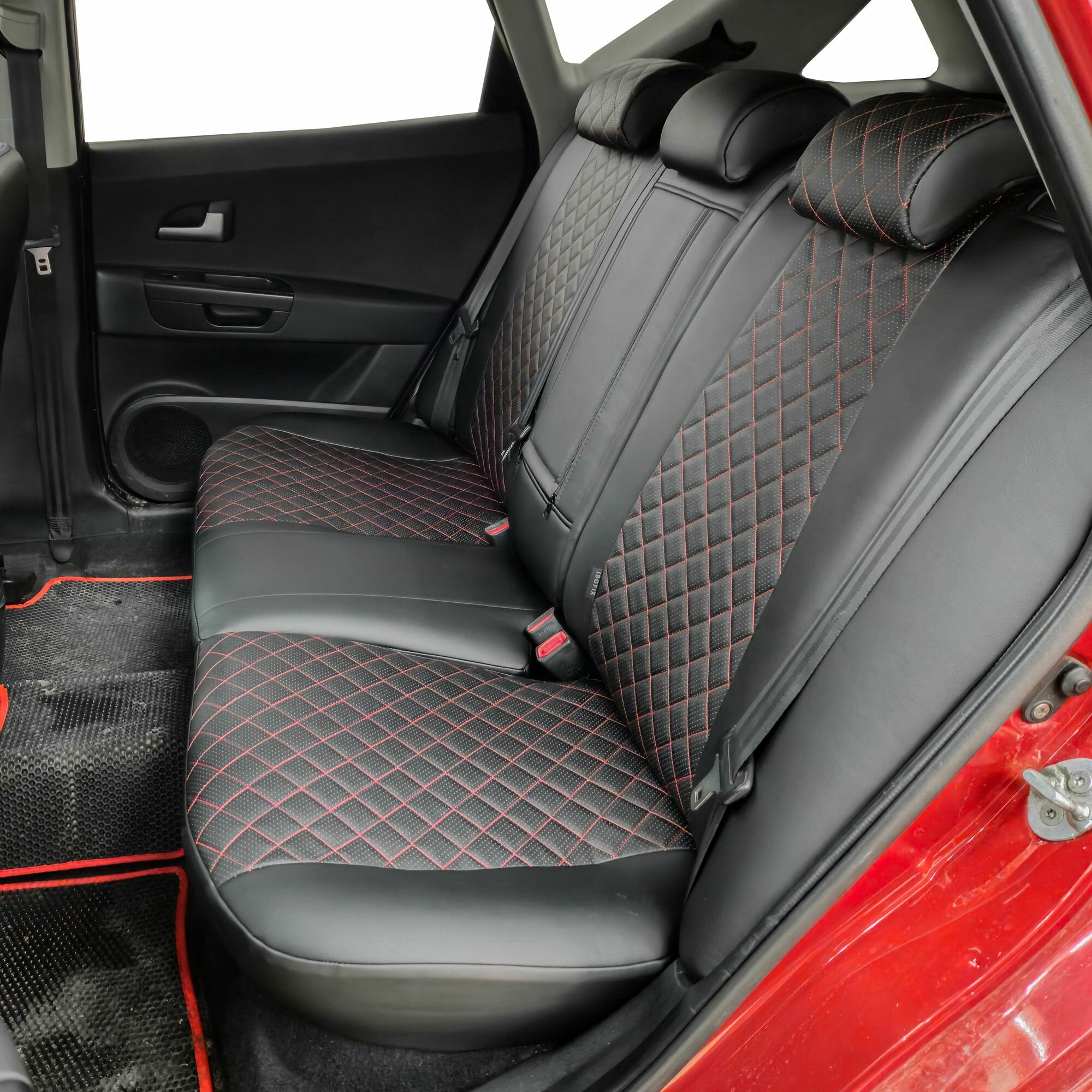 Чехлы на KIA Ceed 1 хэтчбек, универсал (2007-2012), Экокожа, Черный + Красный, Автопилот, ki-si-skhu-chekr-e