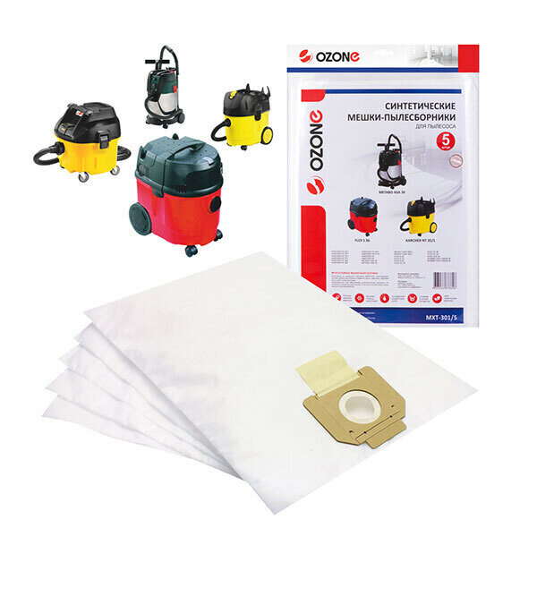 Синтетические мешки-пылесборники Ozone MXT-301/5 для пылесоса KARCHER NT 35/1, DEWALT, FLEX, HAMMER и других, 5 шт