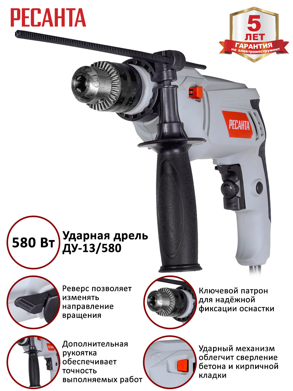 Дрель ударная Ресанта ДУ-13/580, 580 Вт