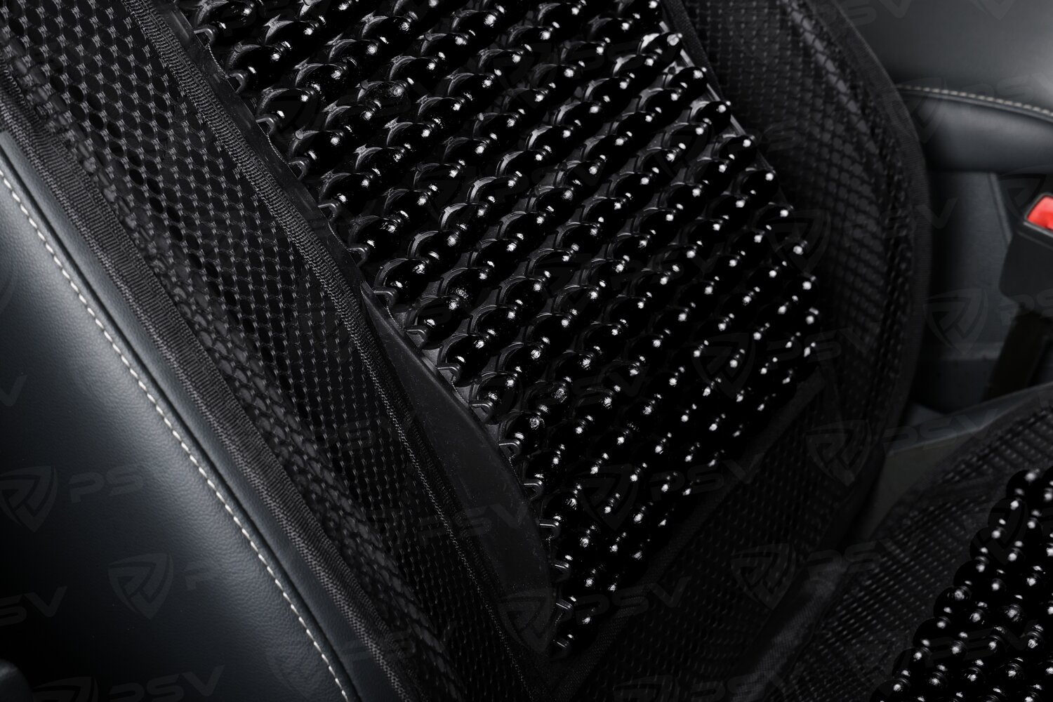 PSV 137158 Накидка на сиденье массажная деревянные шарики PSV 2010 большая с поддержкой черная