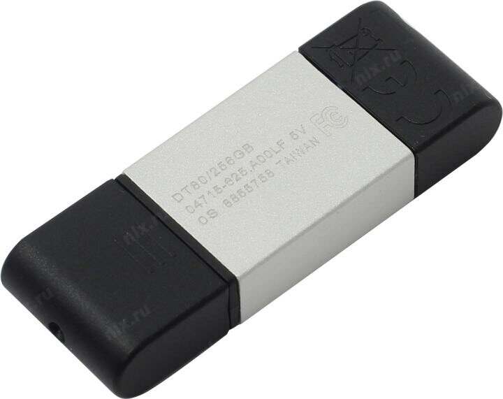 Флешка Kingston DataTraveler 80 256 ГБ, 1 шт., черный/серебристый