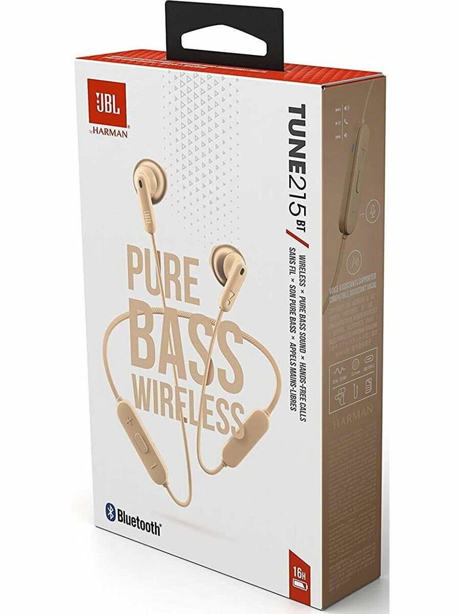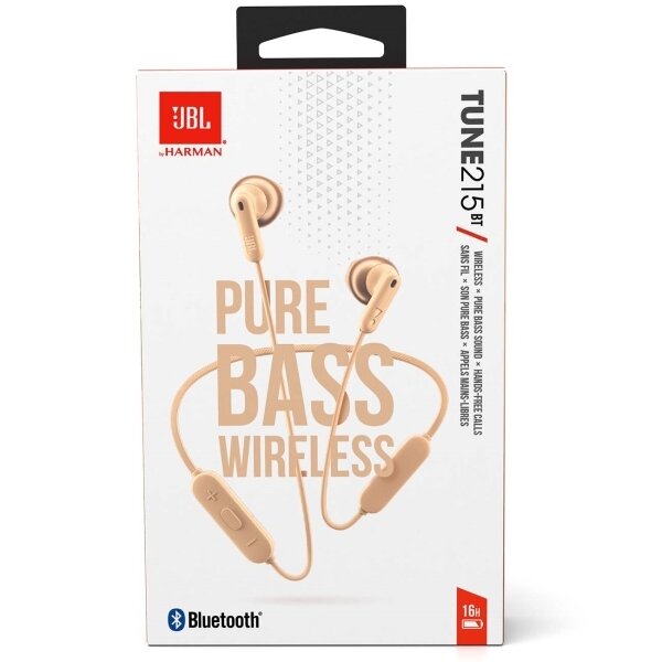 Гарнитура Bluetooth JBL TUNE T215BT вставные, Bt5.0, 20 Ом, 118дБ, время работы до 16ч Шампань