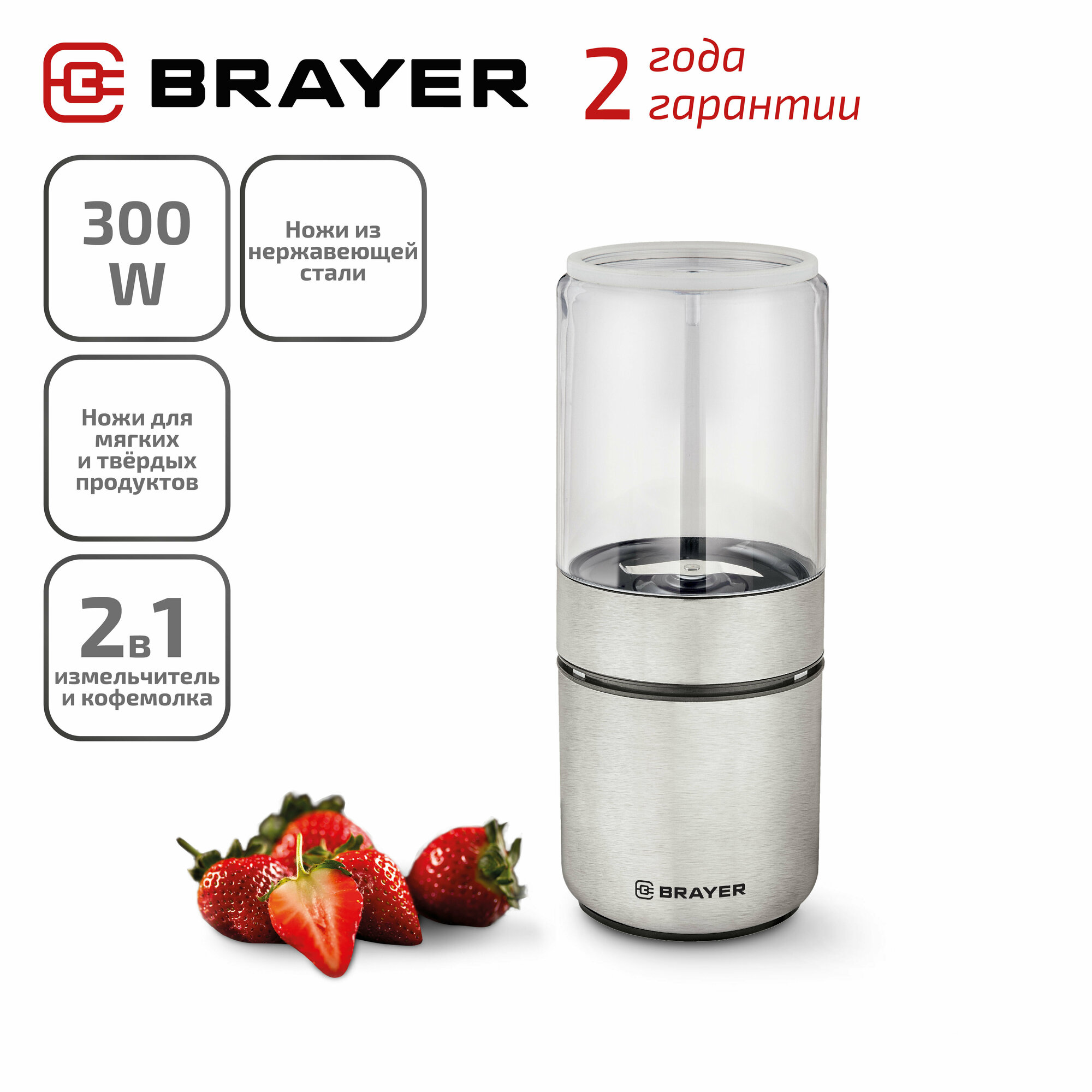 Измельчитель кофемолка BRAYER BR1401, 350 Вт, серебристый