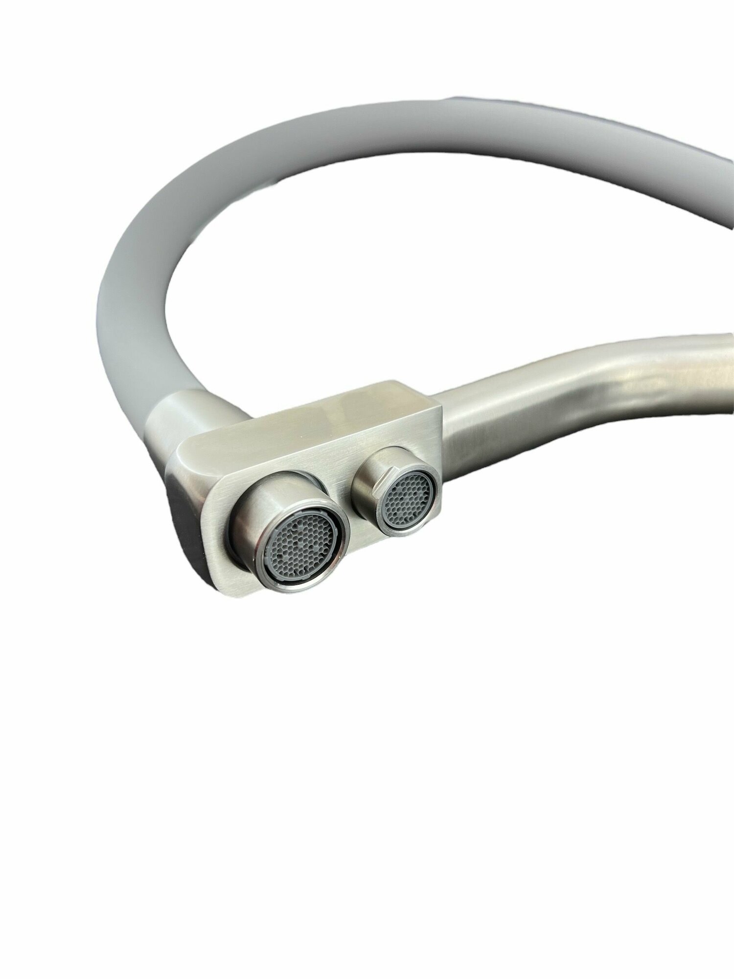 Смеситель для кухни OUTE матовый хром с серым изливом, однорычажный, с дополнительным выводом под фильтр питьевой воды, с аэратором, с гибким изливом.