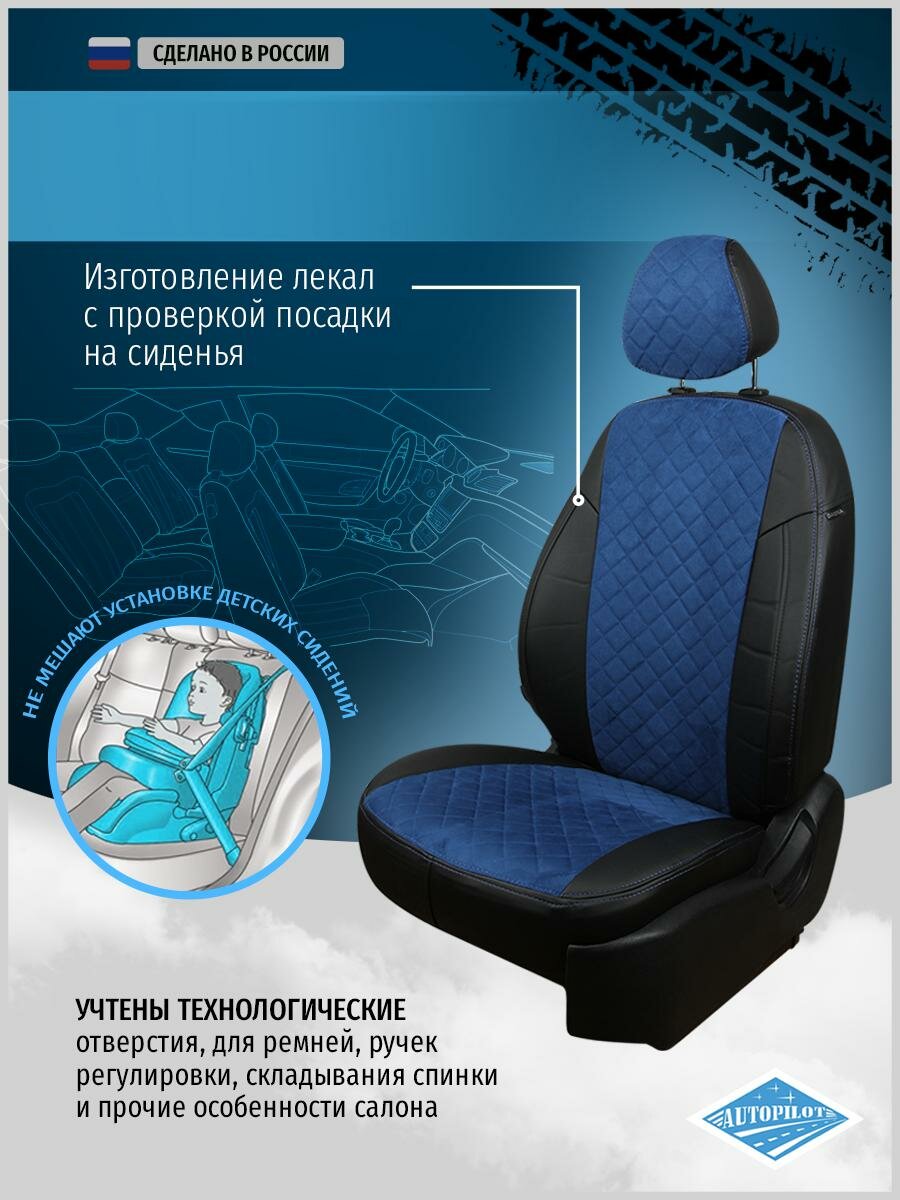 Купить Комплект чехлов Автопилот Алькантара ромб Skoda Octavia A-7 Elegance (с подлокотником) Hb/Wag с 1 Черный + Синий
