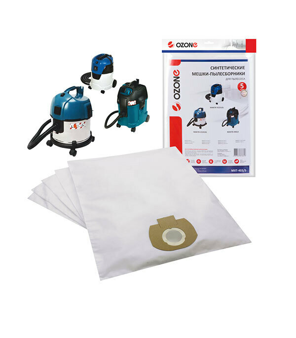 Мешки для пылесоса MAKITA VC2012L VC2512L 5шт. синтетические не боятся мокрой пыли бренд. OZONE арт. MXT-403/5