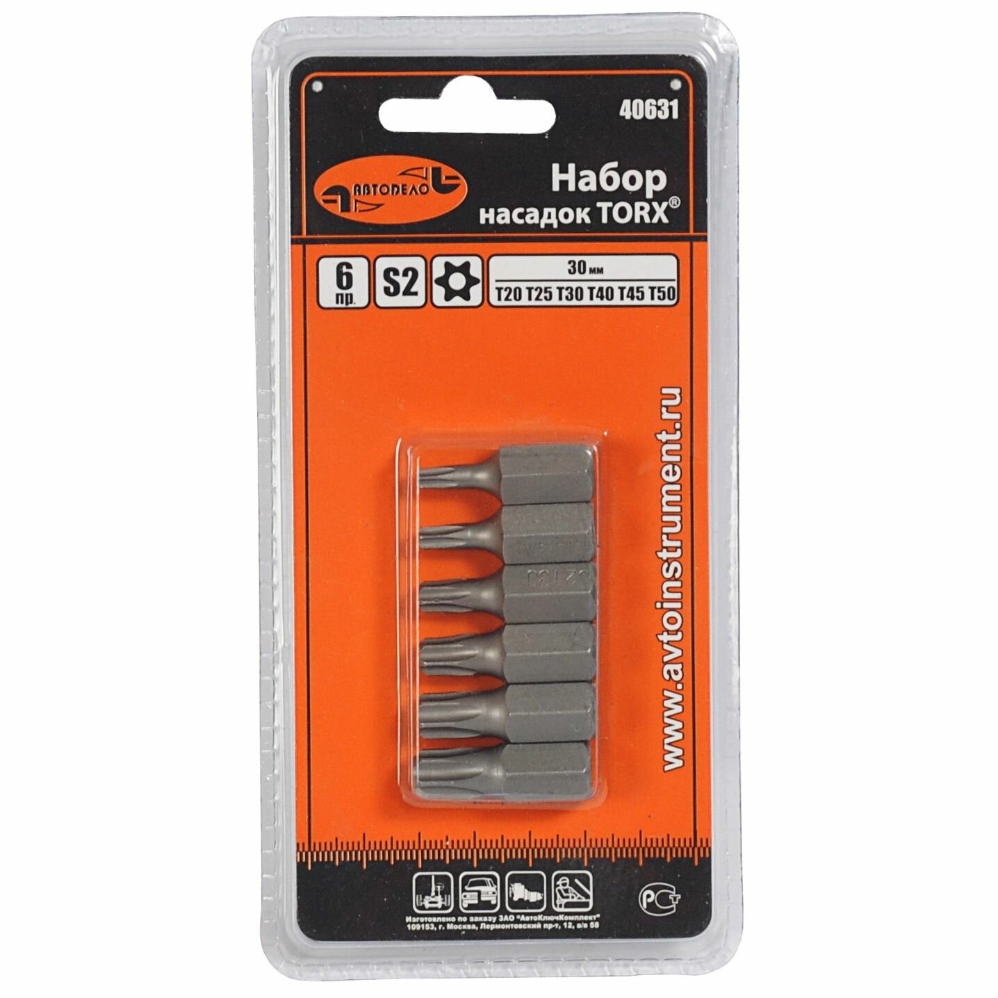 Набор бит с отверстием TORX ТT20-ТT50 30мм 6 шт. 6 лучей АвтоDело 40631