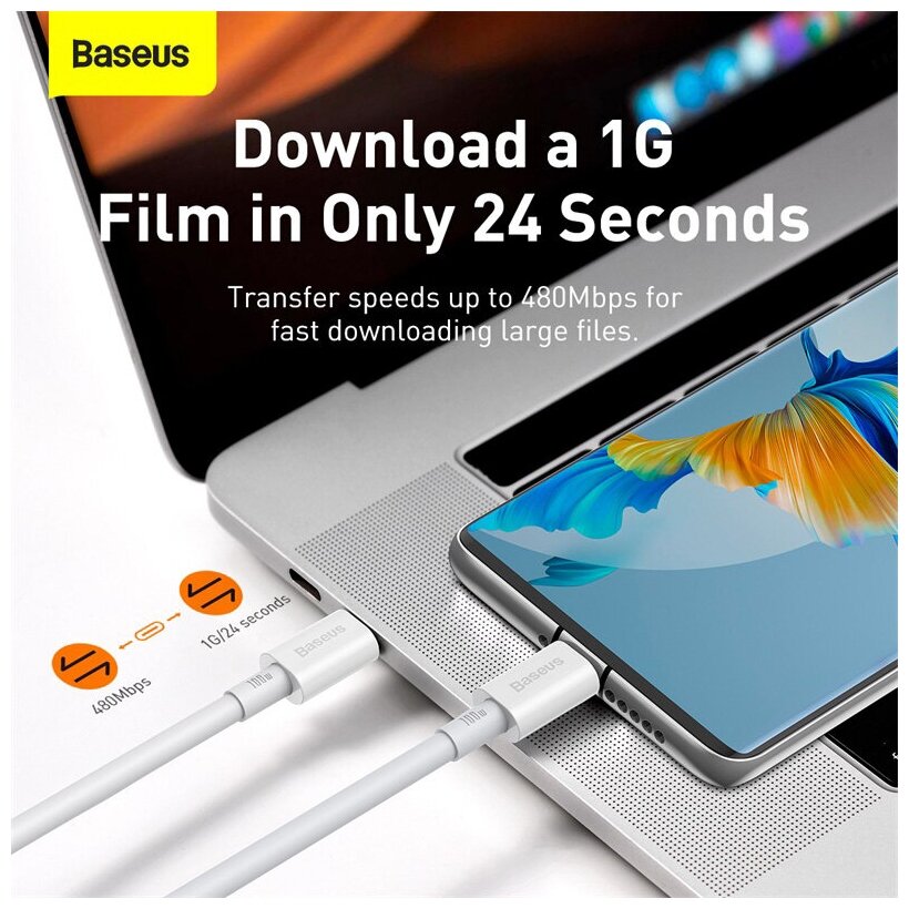 Кабель Type-C-Type-C Baseus Superior 100W White 1m 5А