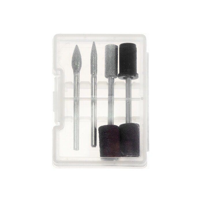 | Дополнительная информация | фрезы в комплекте: 4 шт. (шлифовщик для стоп, аналог фрезы пламя для поднятия кутикулы, аналог фрезы пуля для прочищения под кутикулой и боковых валиков, фреза для обработки стоп) |