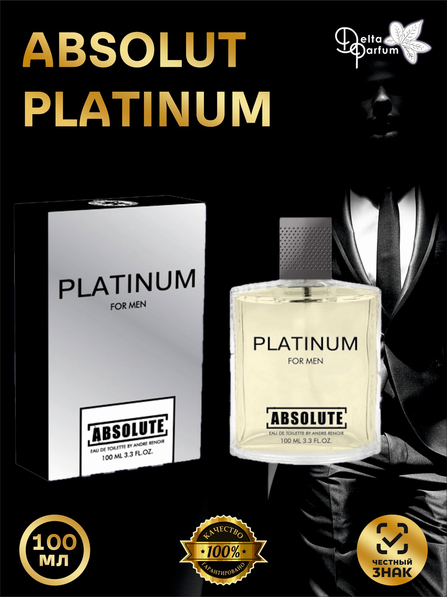 Мужская туалетная вода DELTA PARFUM Absolute Platinum, 100 мл