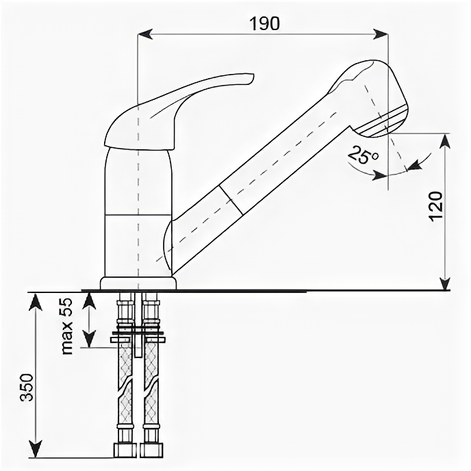 | Длина излива | 190 мм |