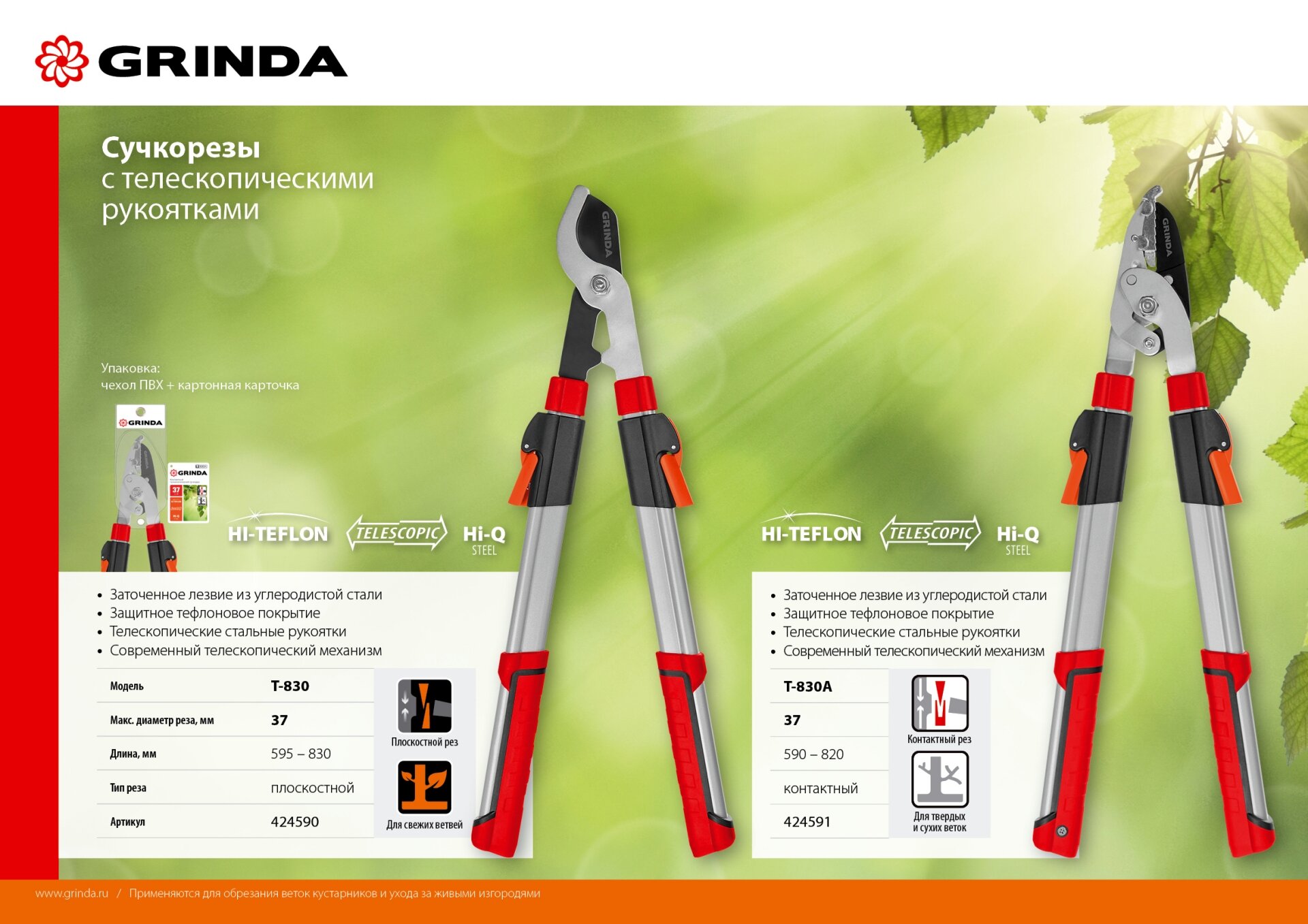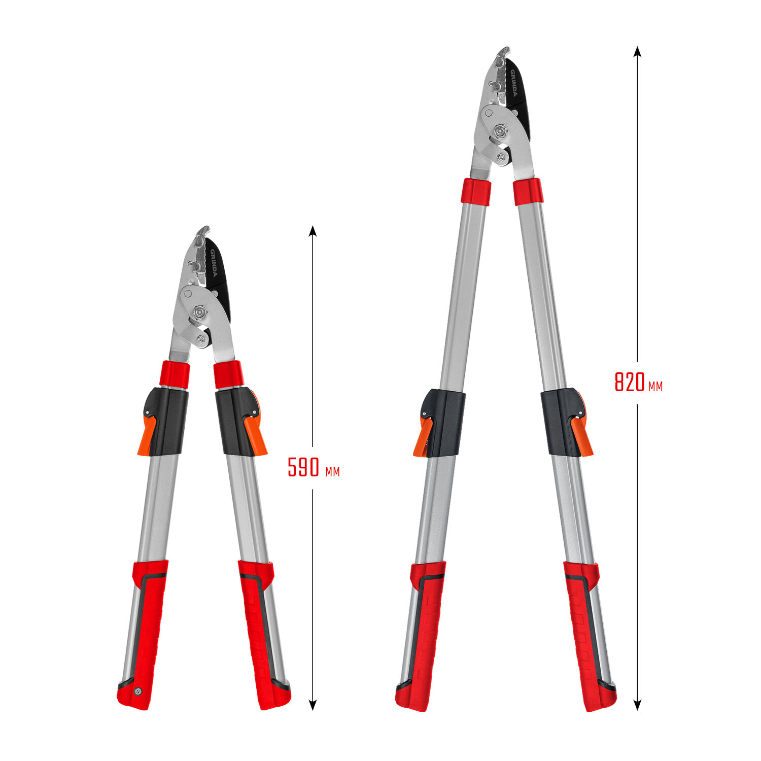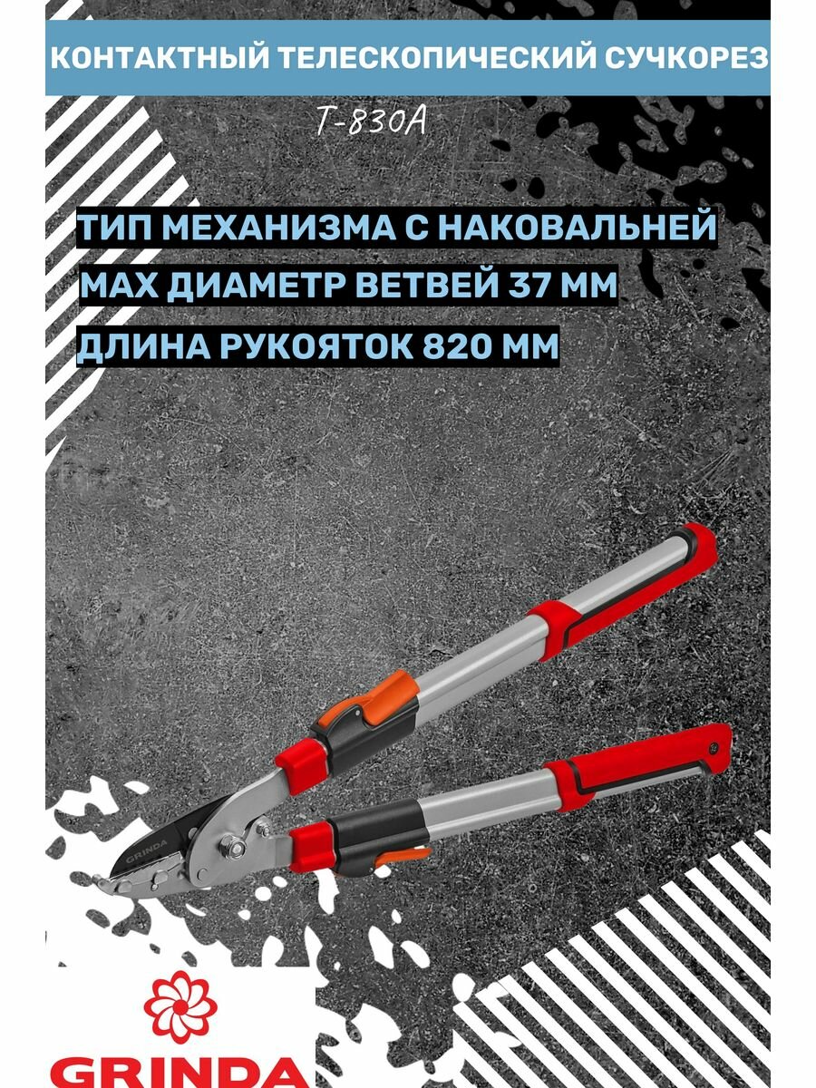 GRINDA T-830A, 590-820 мм, закаленные лезвия, телескопический, контактный сучкорез (424591)