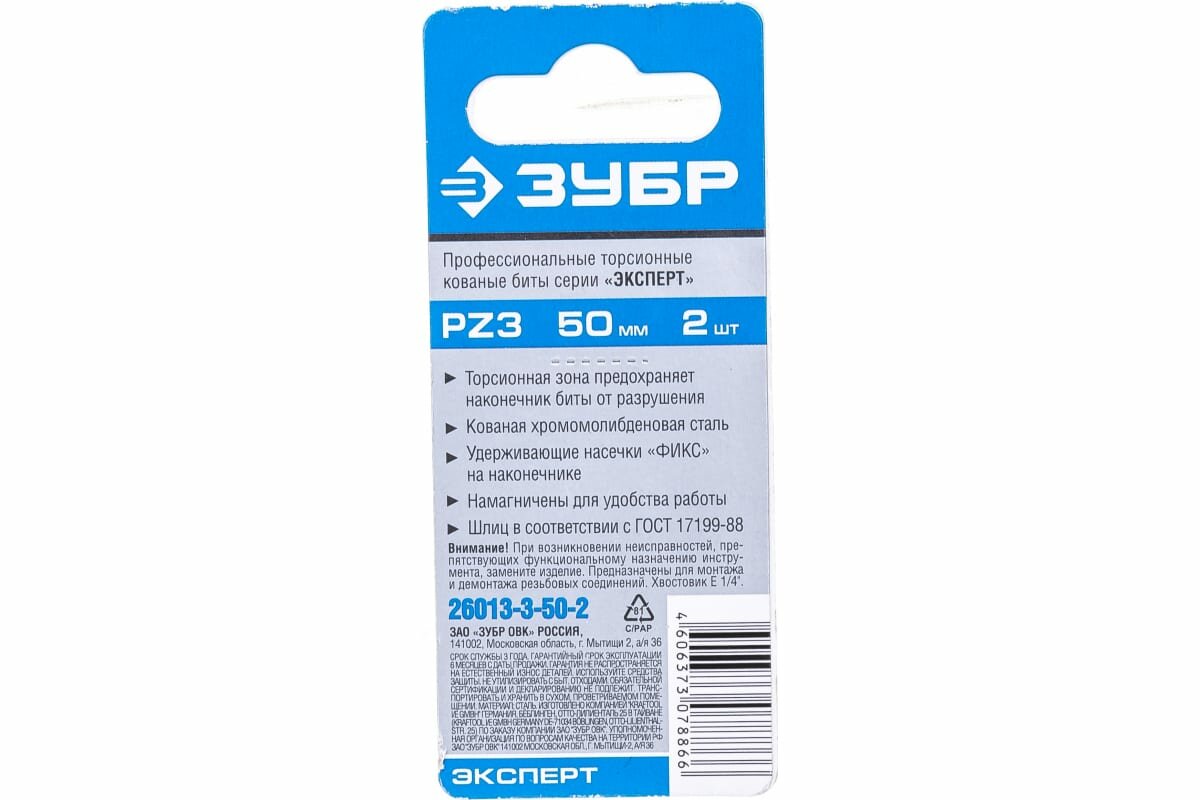 Биты Зубр "эксперт", PZ3, 50 мм, 2 шт, 26013-3-50-2