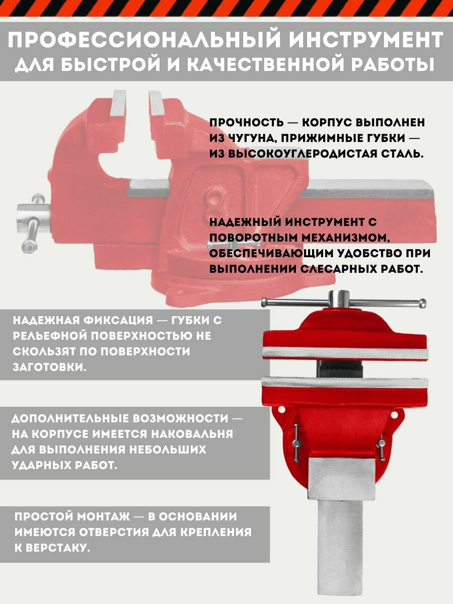 Sparta Тиски слесарные Sparta, 100 мм, поворотные, с наковальней