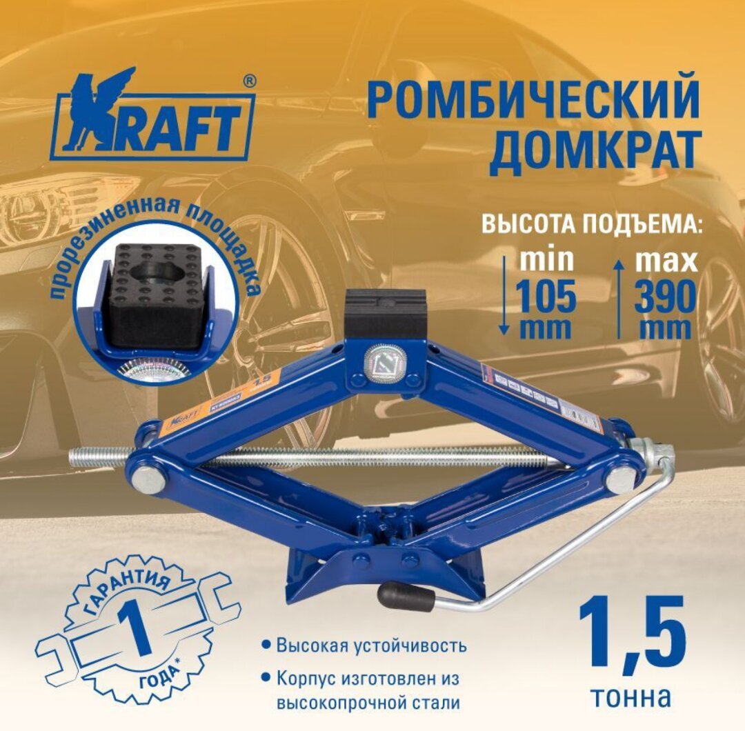 KRAFT KRAFT Домкрат ромбический 1,5 т MASTER (105-390 мм ) KRAFT KT 800053 KRAFT KT 800053 KRAFT KT800053